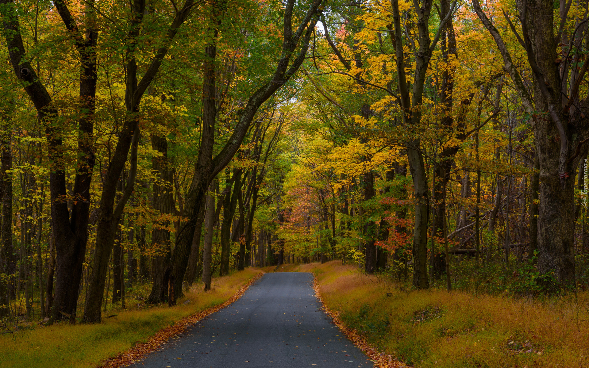 Edytor tapety: Jesienne drzewa na poboczu drogi