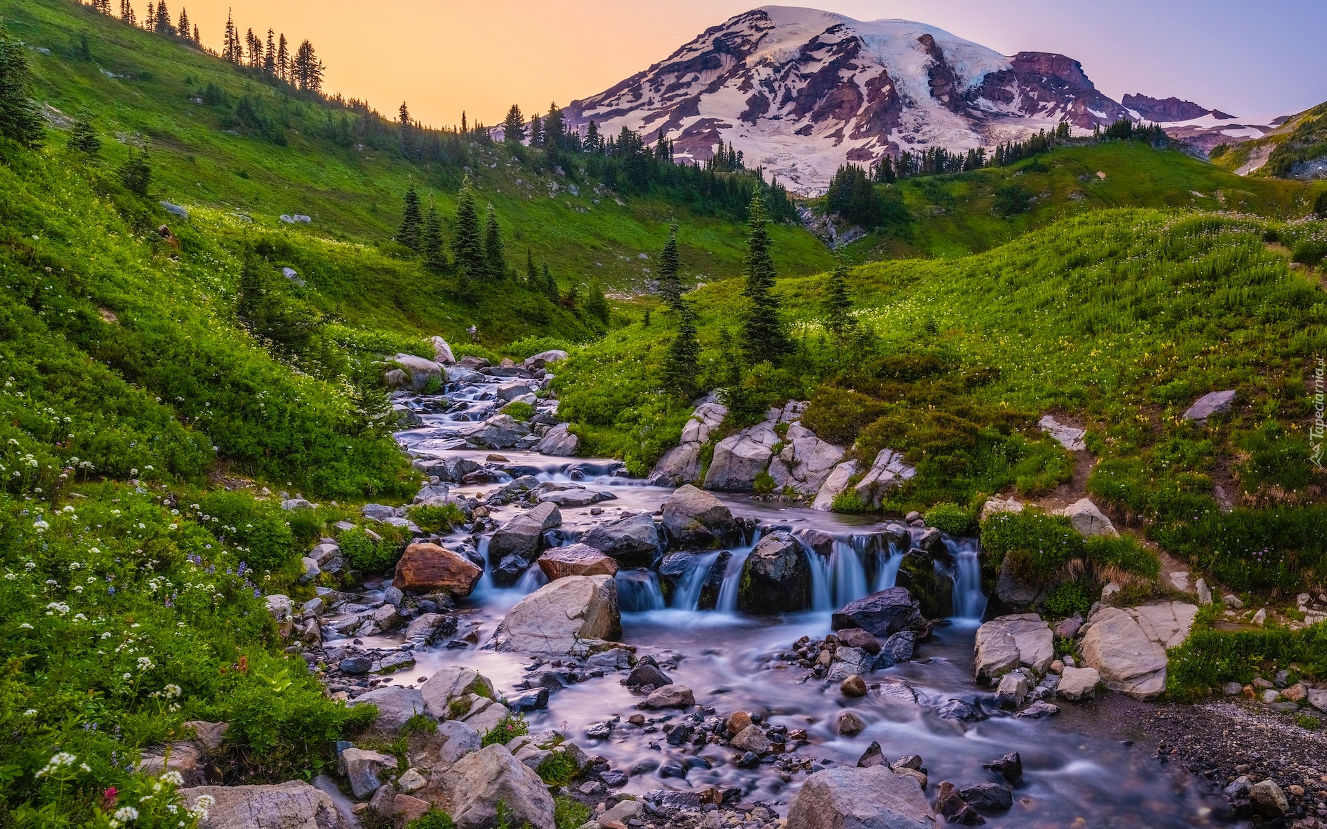 Edytor tapety: Kamienisty potok w Parku Narodowym Mount Rainier