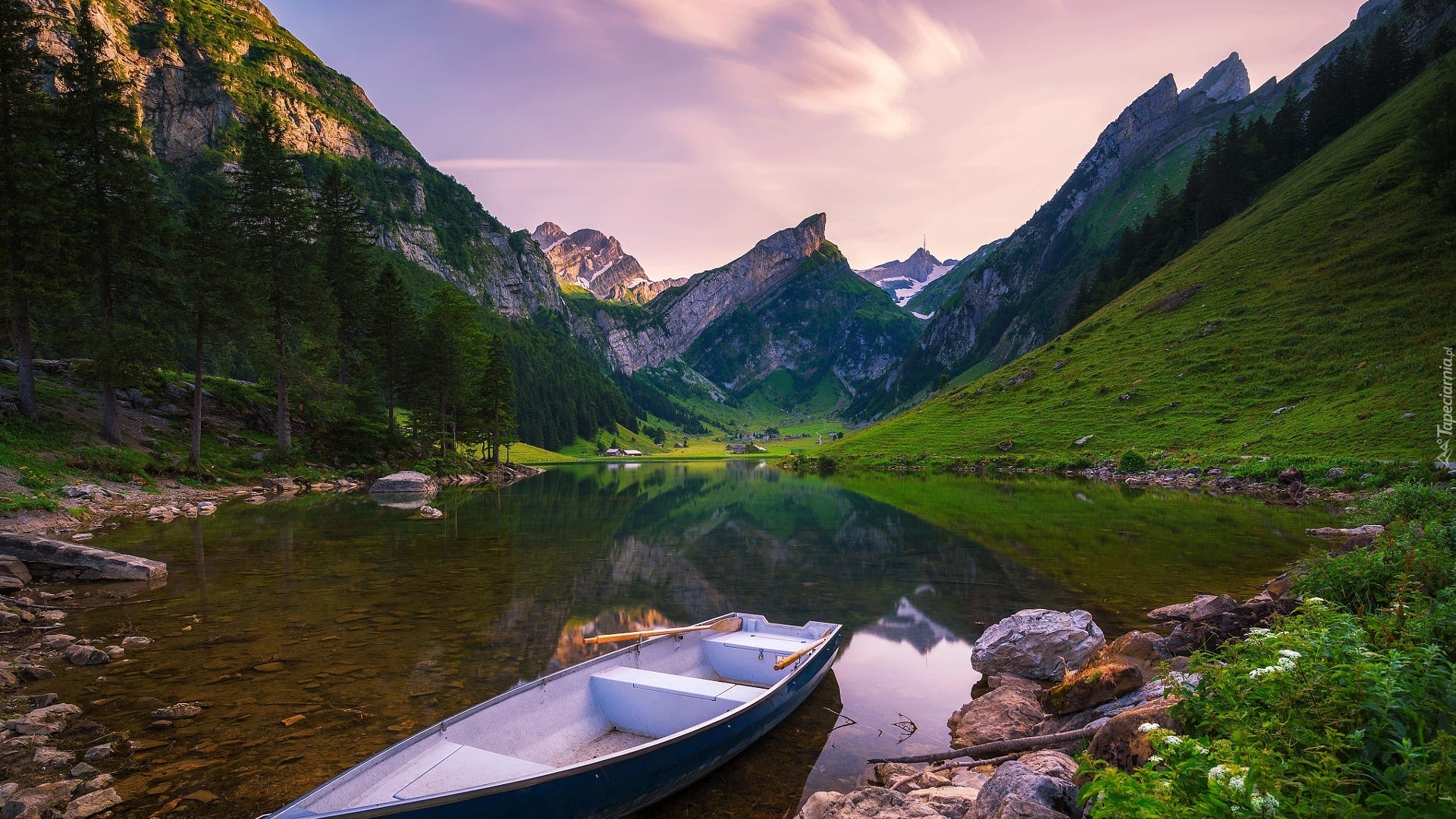 Edytor tapety: Łódka na jeziorze Seealpsee