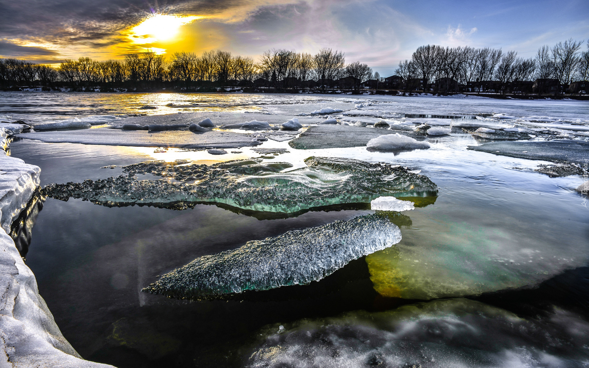 Edytor tapety: Oblodzona rzeka o poranku