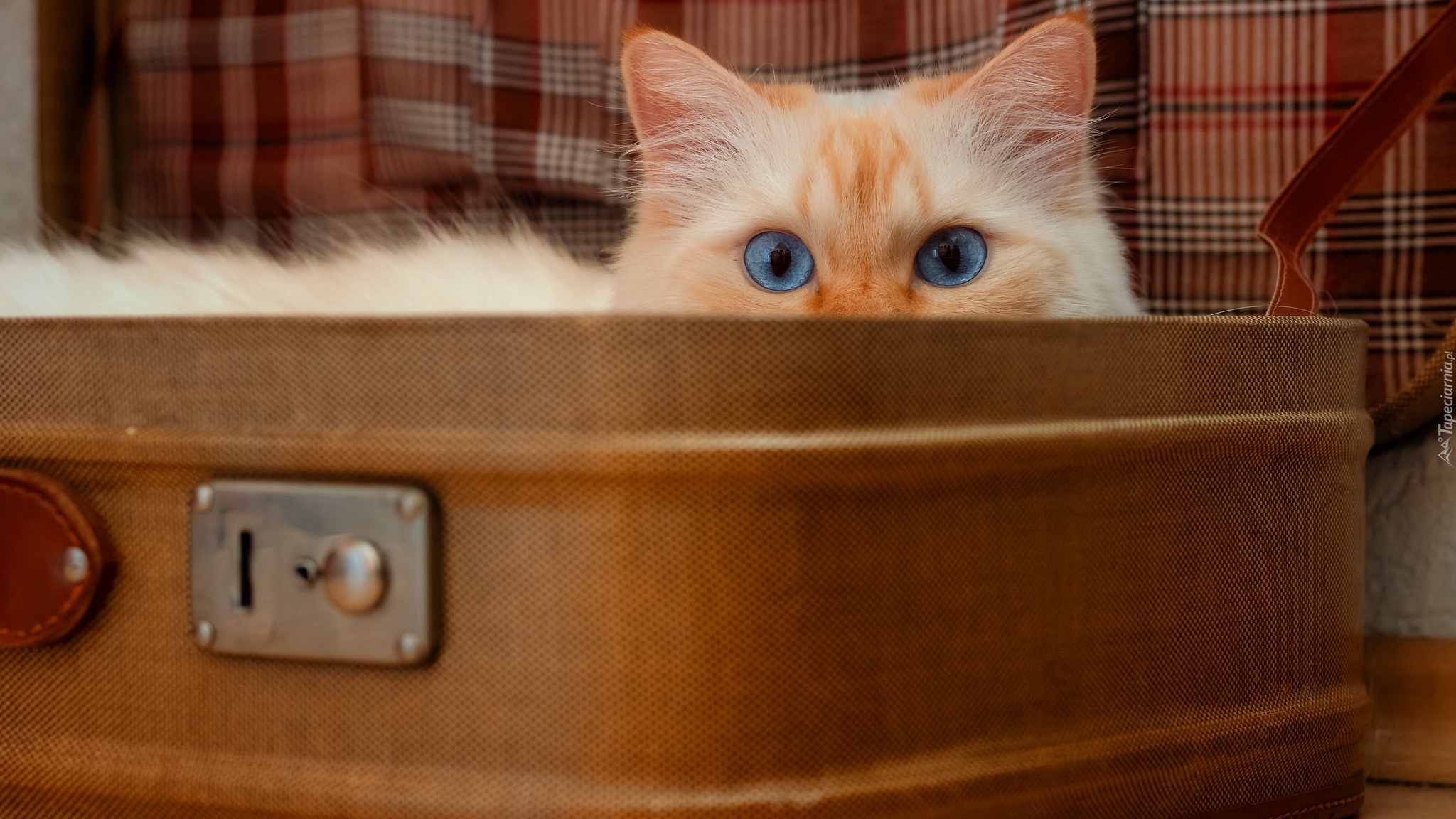 Edytor tapety: Niebieskooki kot w walizce