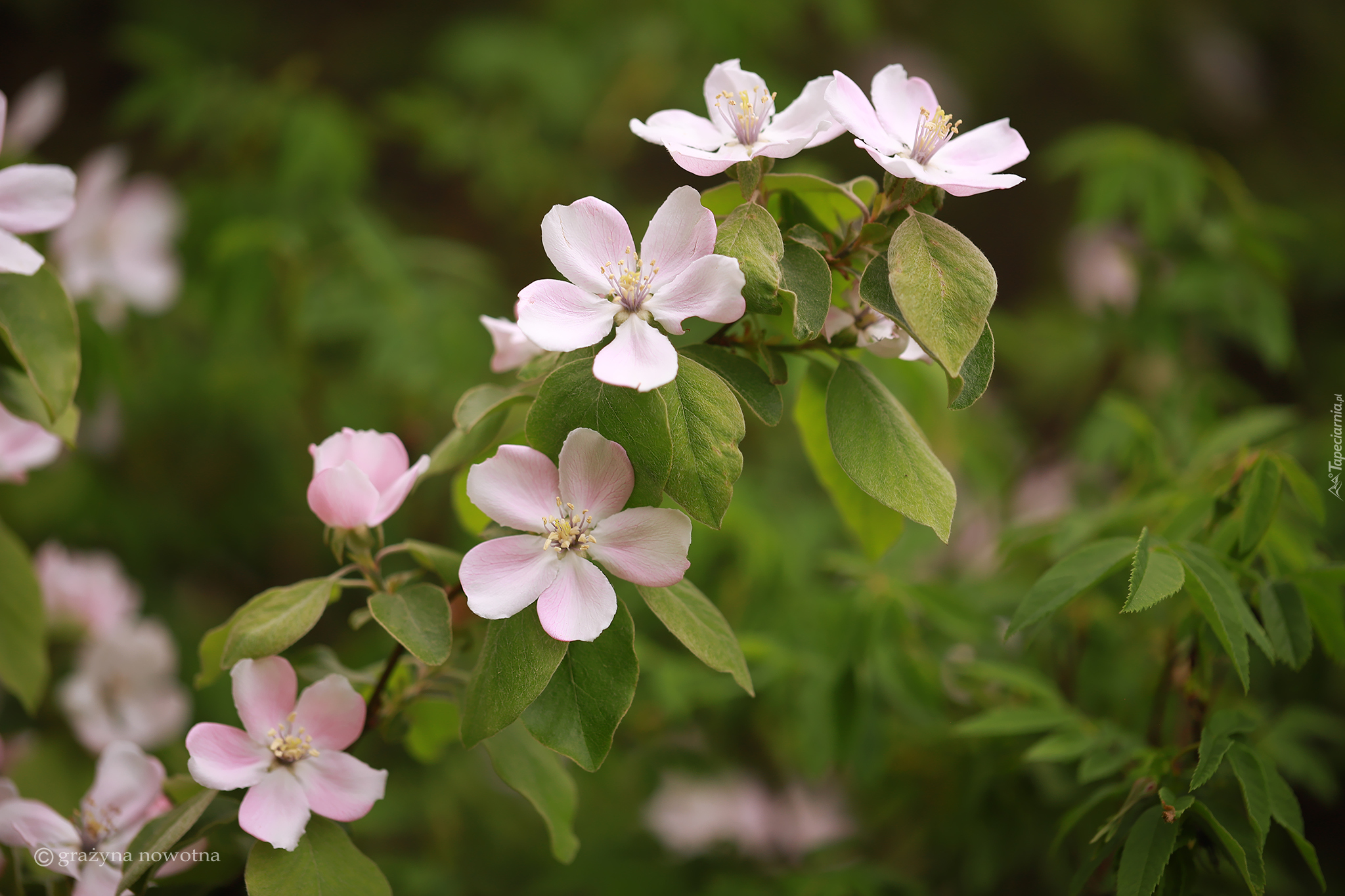 Edytor tapety: Różowe kwiaty jabłoni z liśćmi
