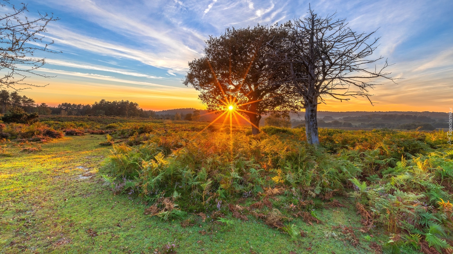 Edytor tapety: Paprocie pod drzewami w promieniach słońca