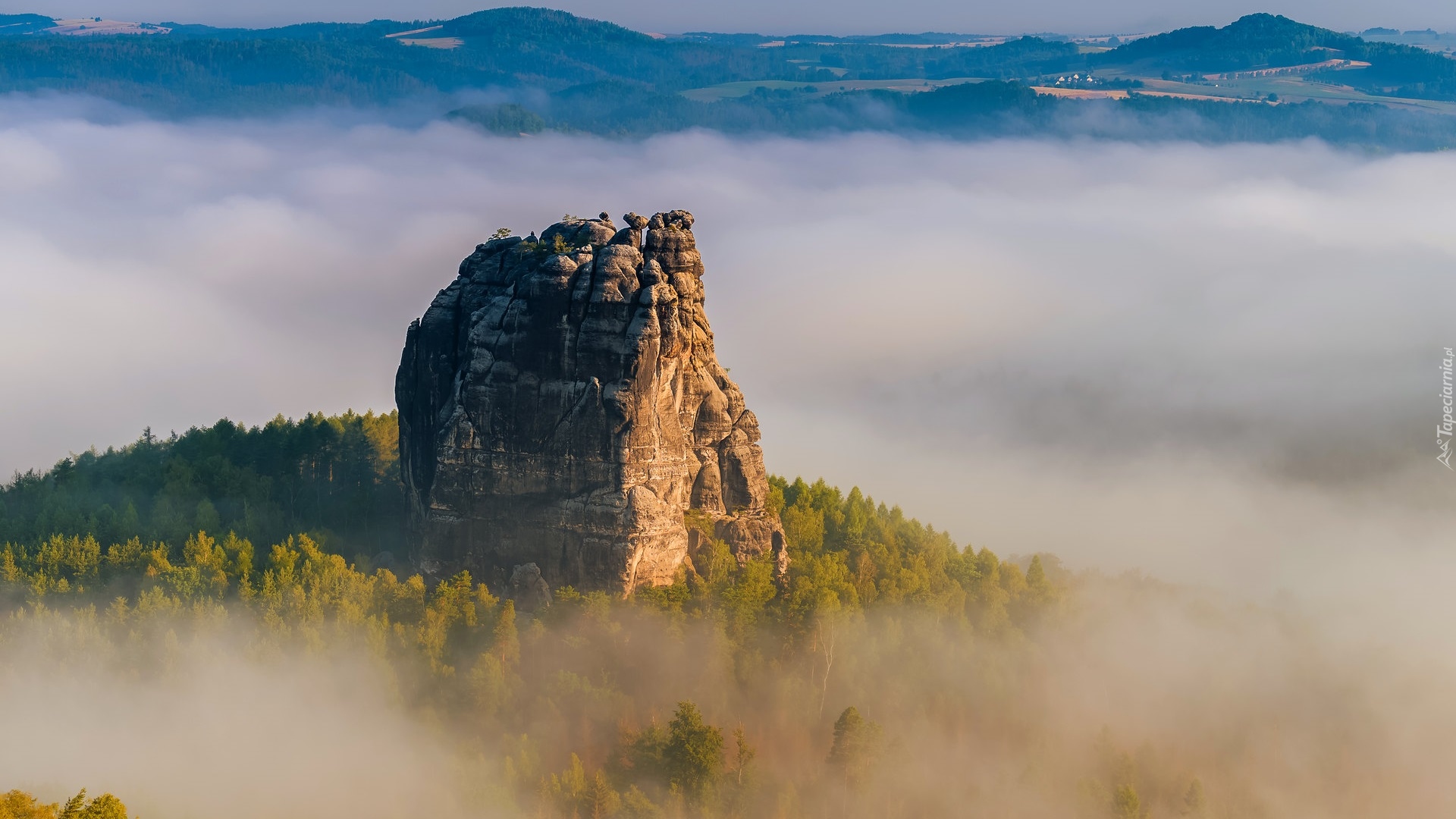 Edytor tapety: Skała Falkenstein na wzgórzu we mgle