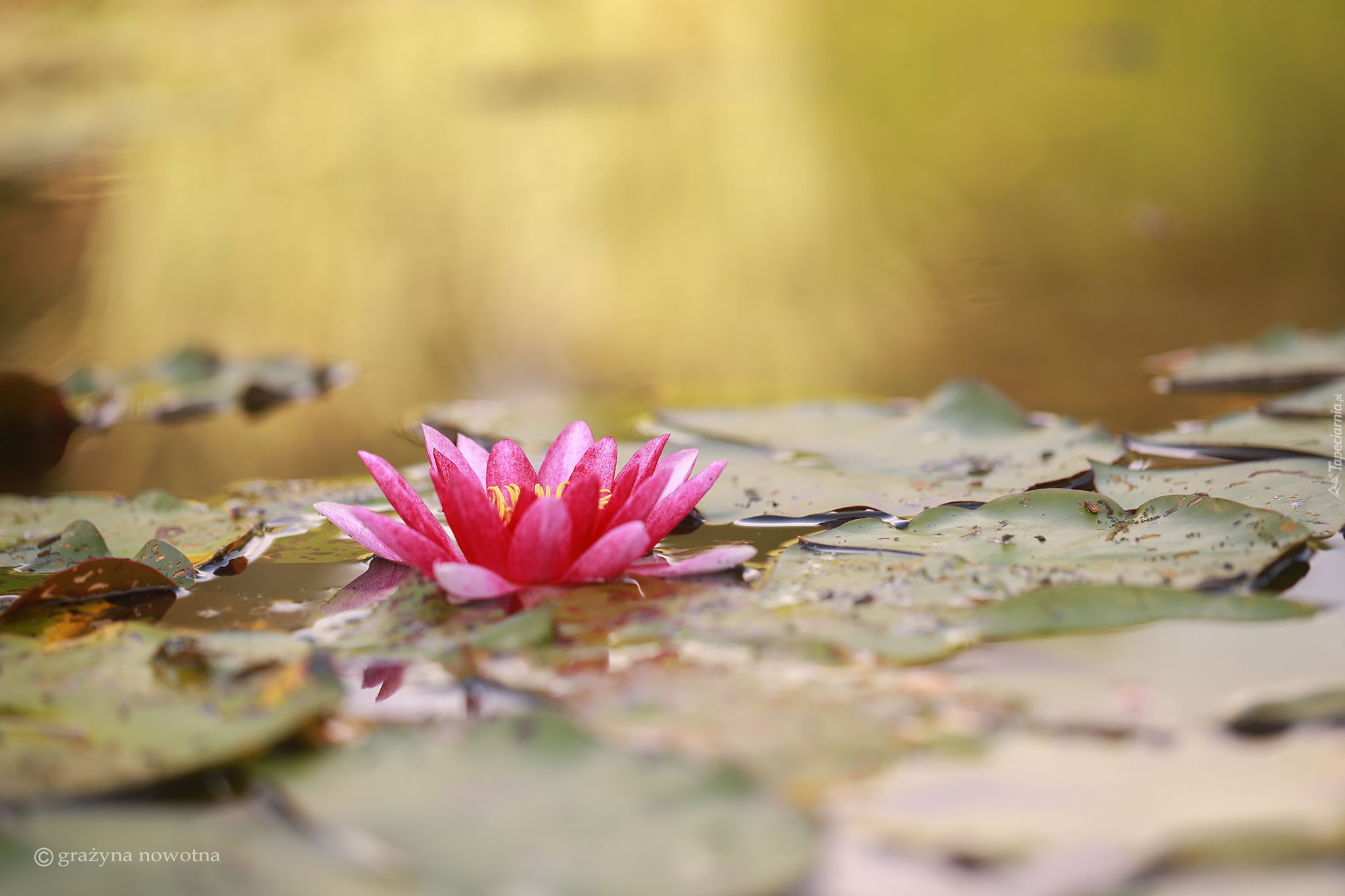 Edytor tapety: Różowa lilia wodna wśród liści w wodzie