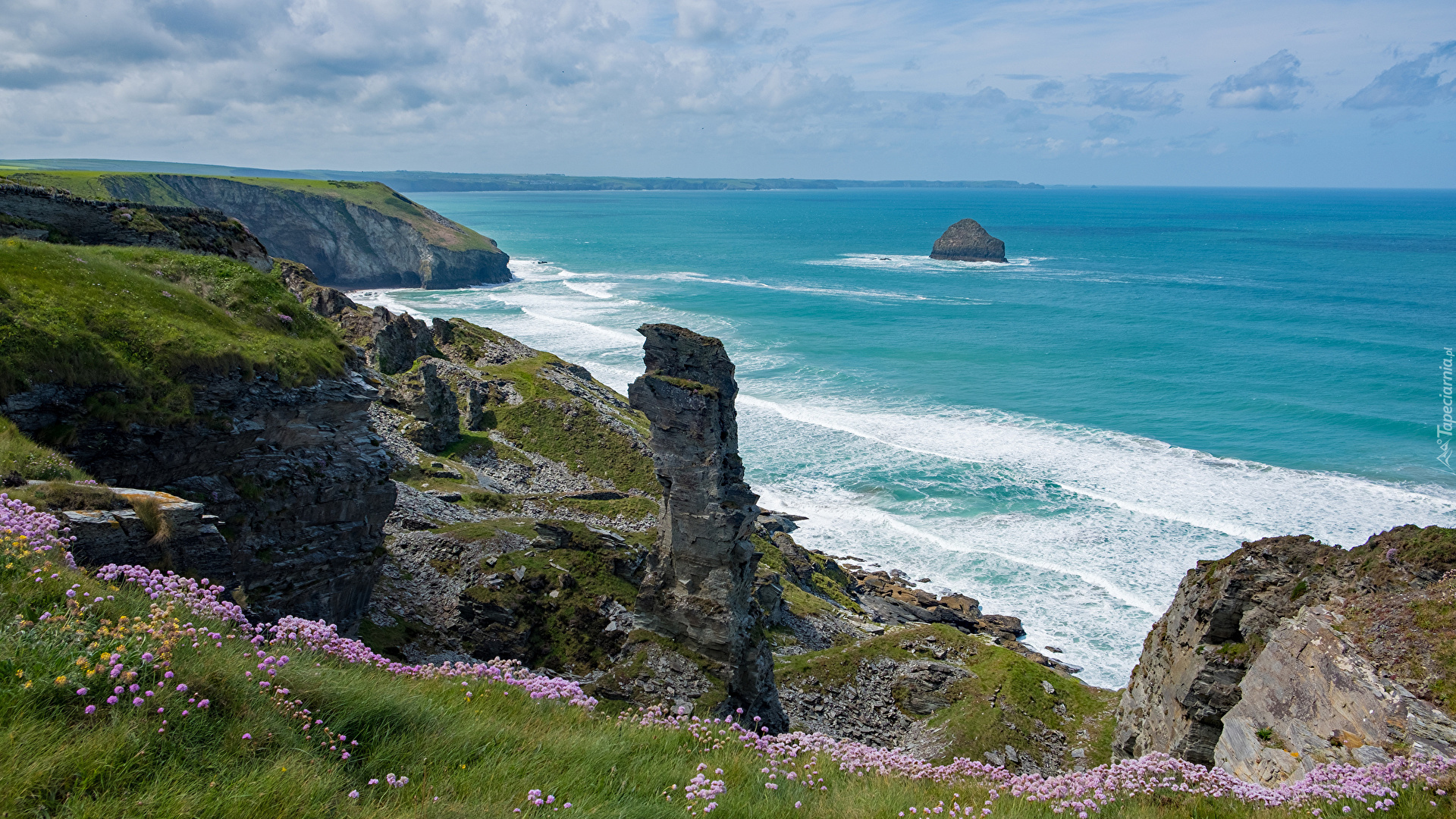 Edytor tapety: Kwiaty i skały na wybrzeżu Kornwalii