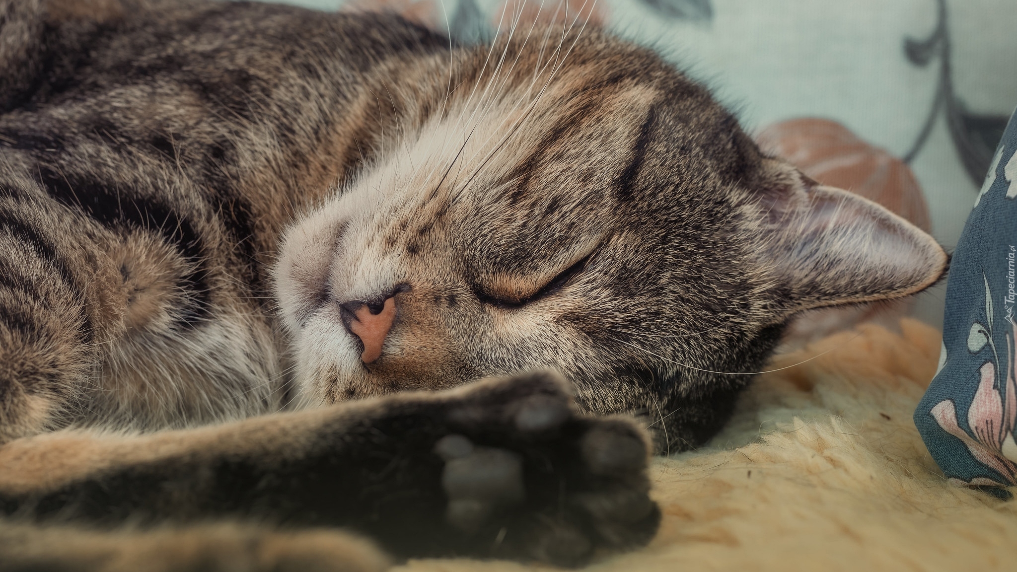 Edytor tapety: Śpiący bury kot w zbliżeniu