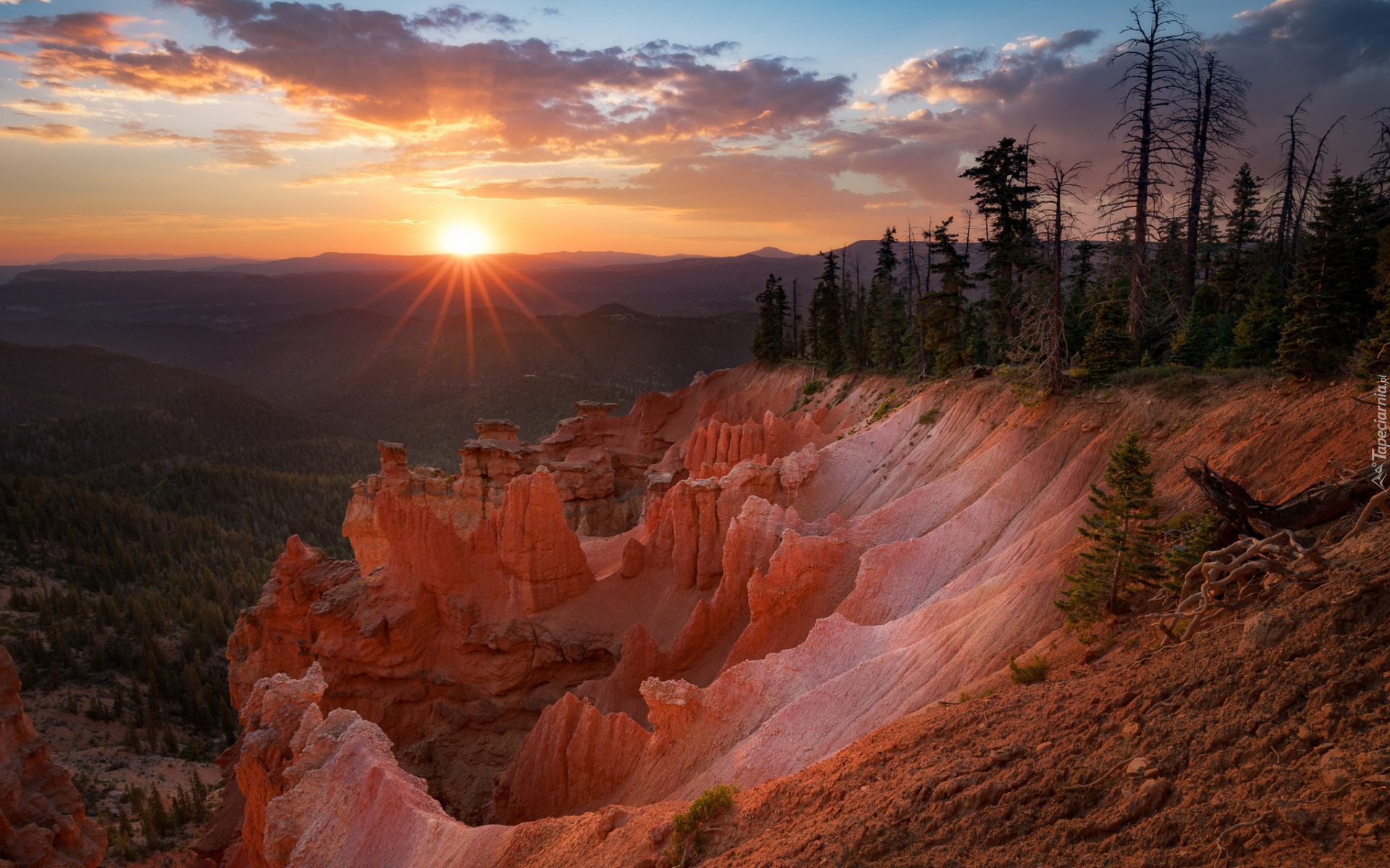 Edytor tapety: Skały oświetlone promieniami zachodzącego słońca