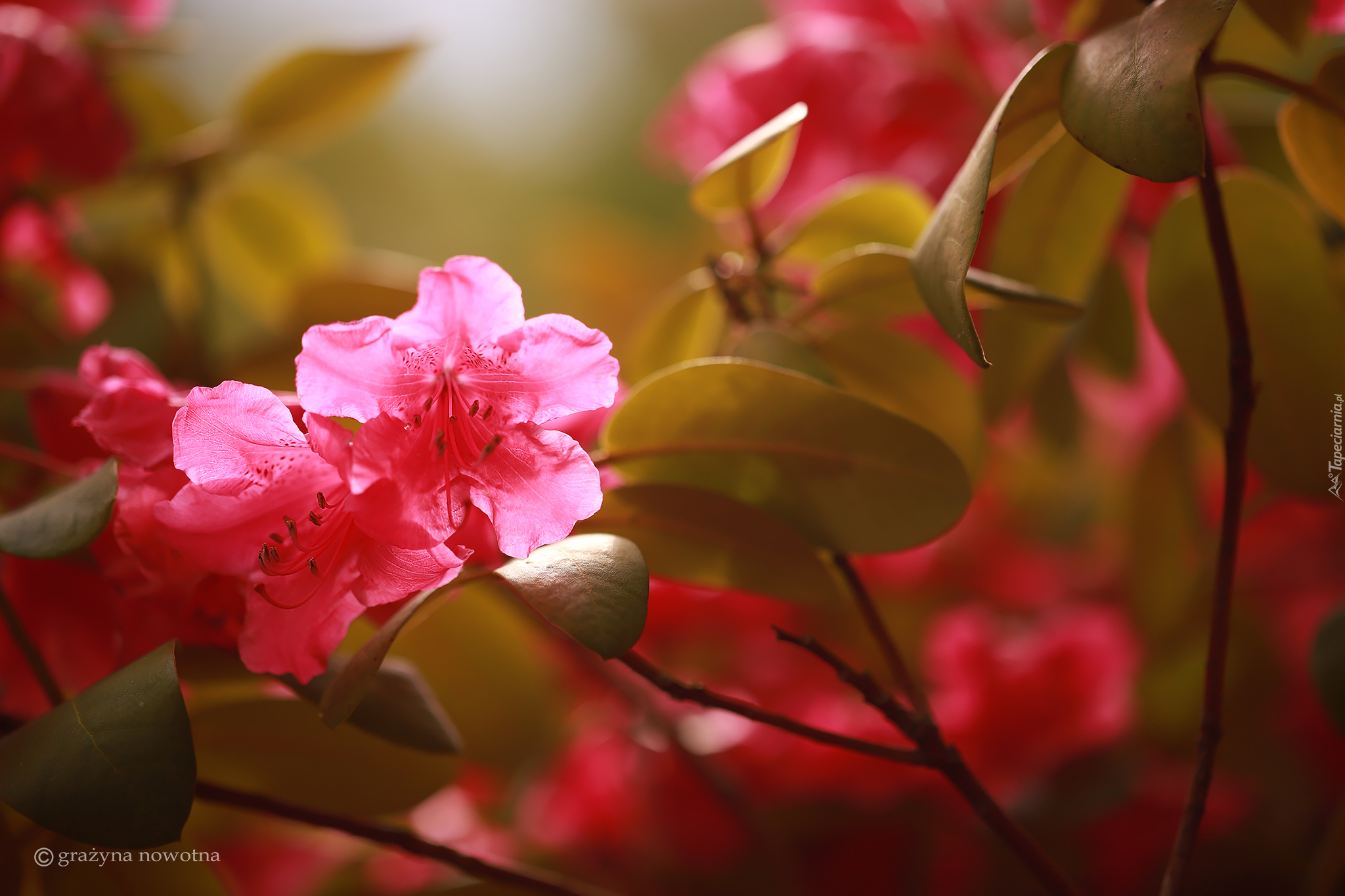 Edytor tapety: Rozkwitnięte różowe azalie