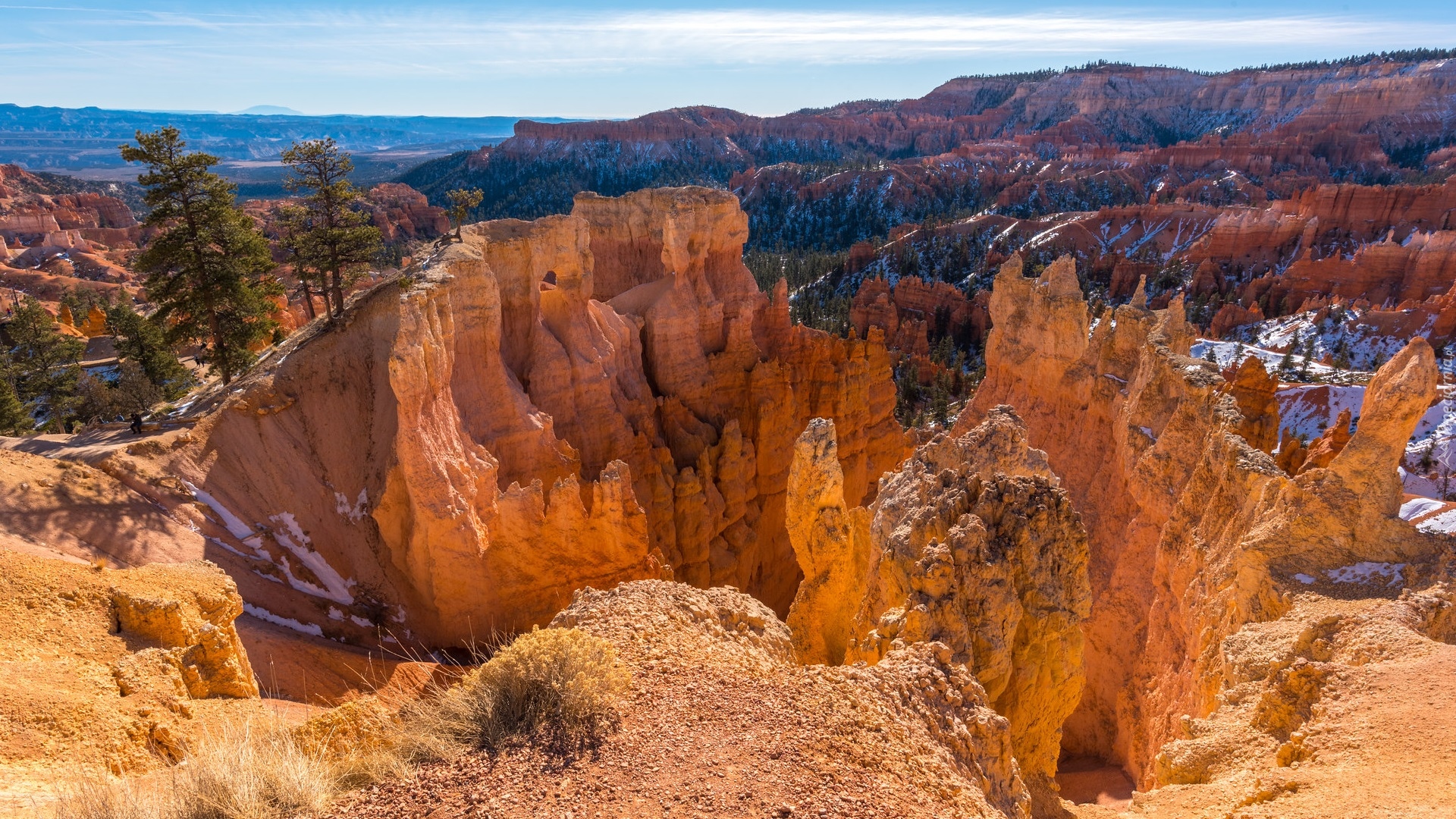 Edytor tapety: Rozświetlone czerwone skały w Parku Narodowym Bryce Canyon