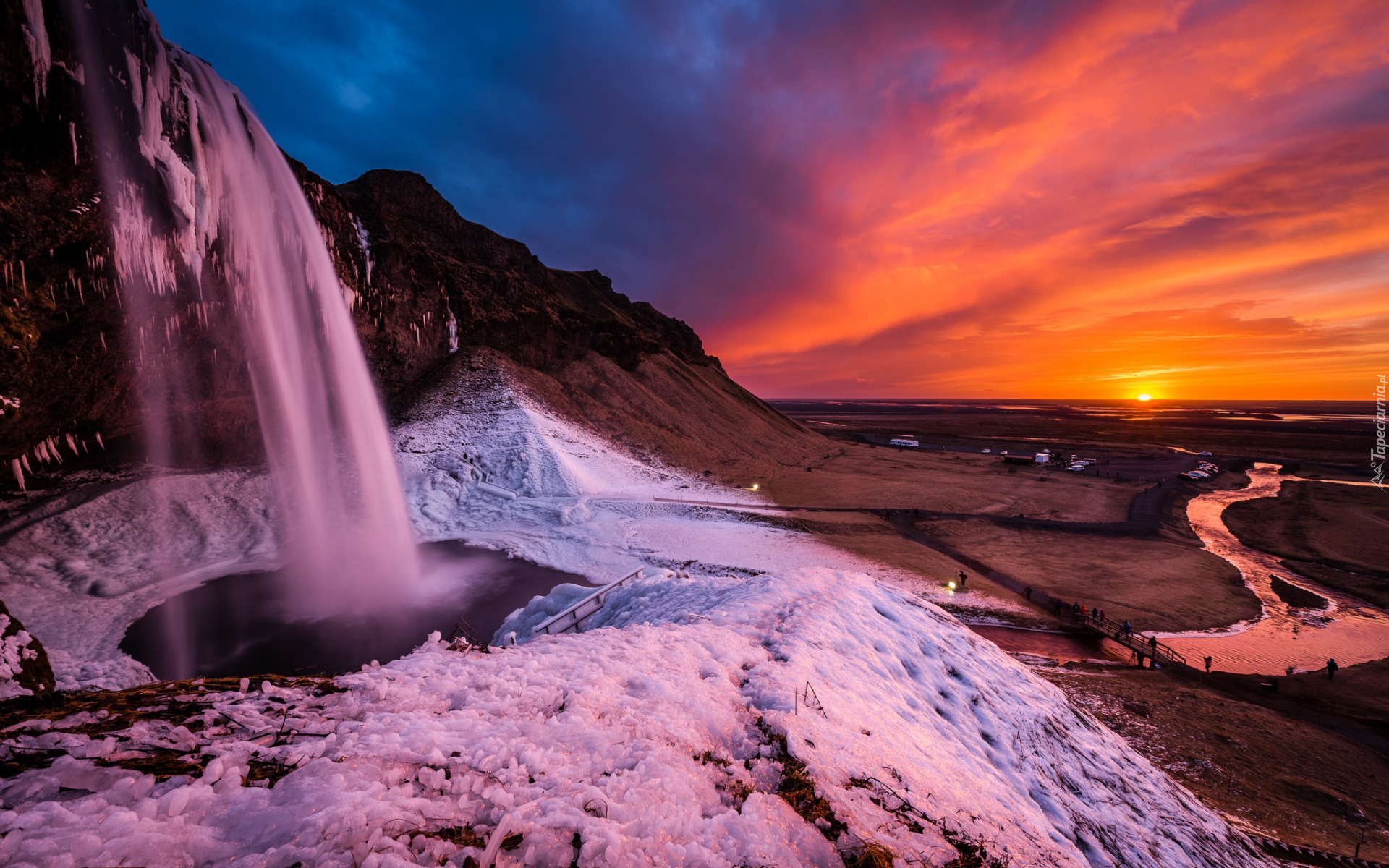 Edytor tapety: Wodospad Seljalandsfoss zimową porą