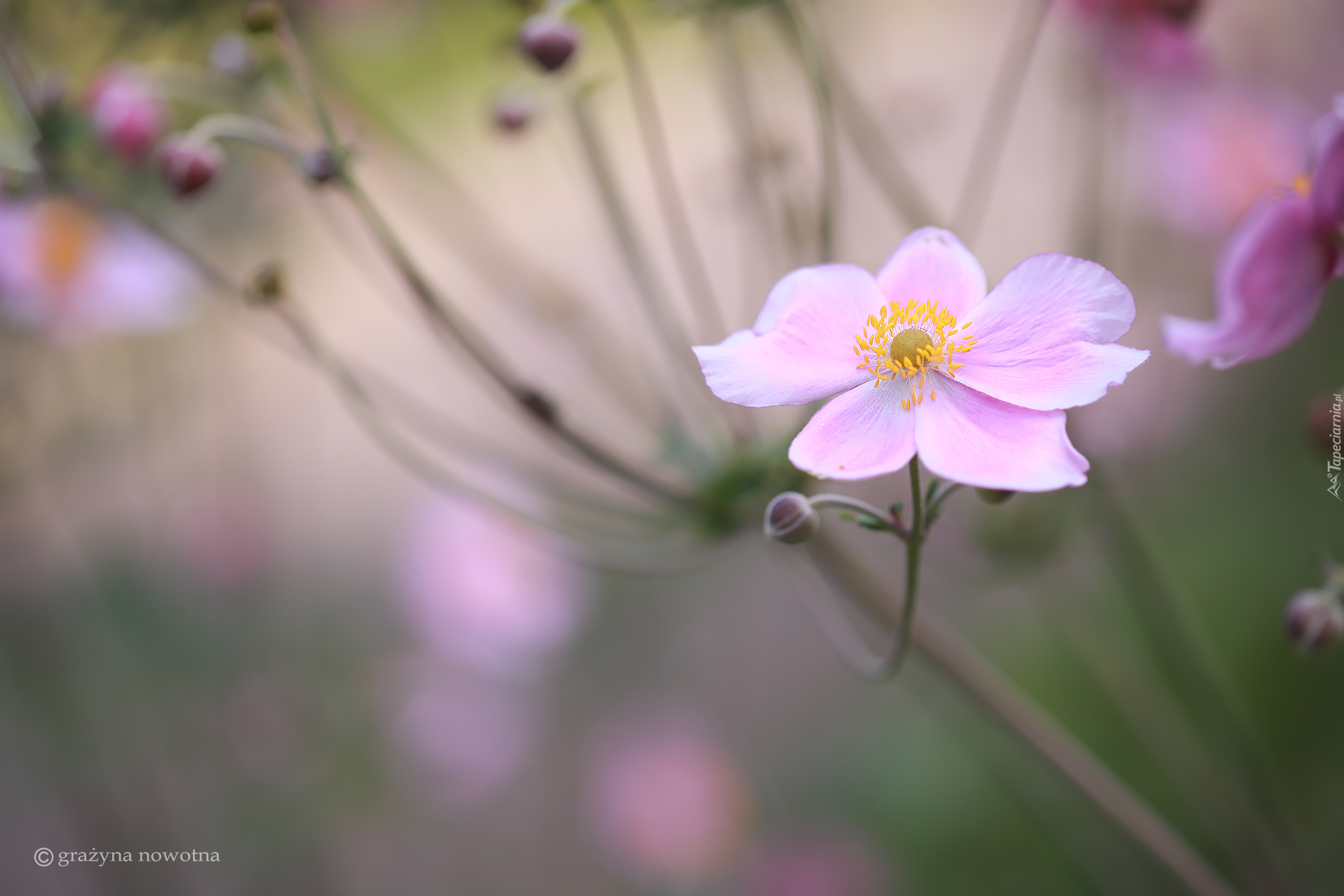 Edytor tapety: Różowy zawilec japoński na rozmytym tle