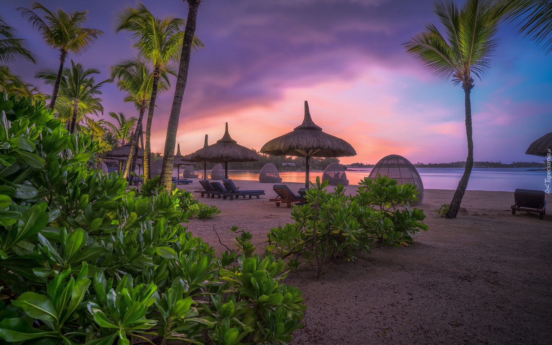 Edytor tapety: Parasole i leżaki na wyspie Mauritius