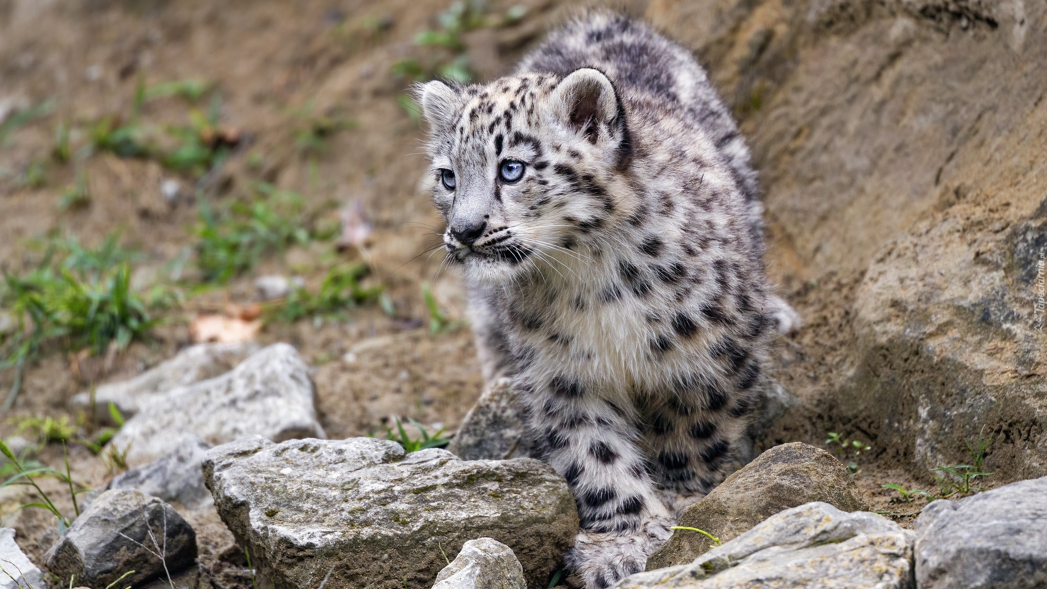 Edytor tapety: Irbis śnieżny na kamieniach