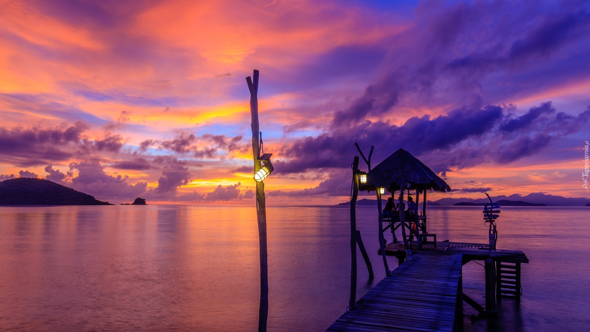 Edytor tapety: Pomost na tle zachodu słońca nad morzem