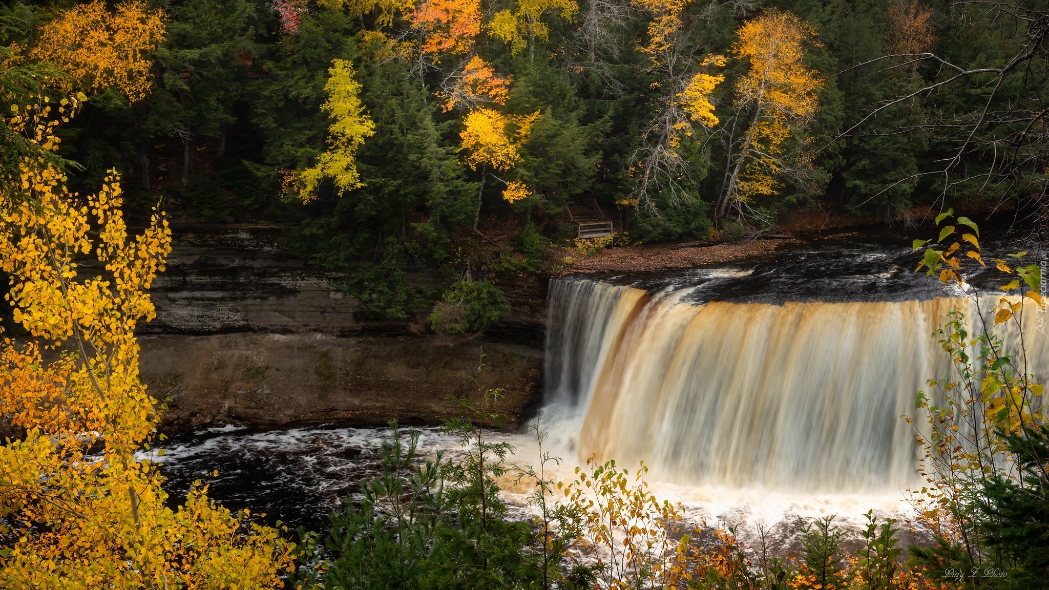 Edytor tapety: Jesienne drzewa przy wodospadzie Tahquamenon w stanie Michigan