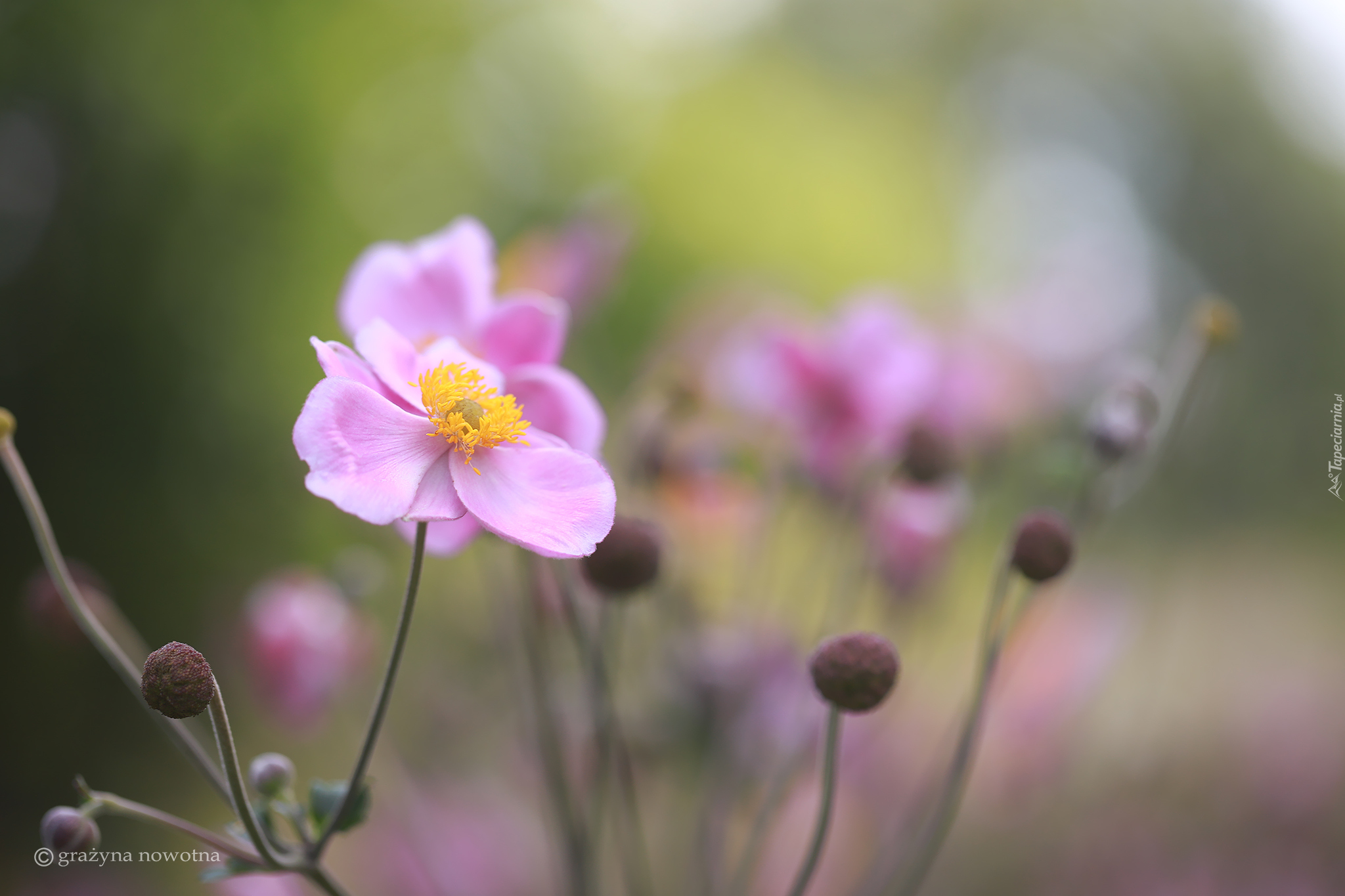 Edytor tapety: Kwiat zawilca japońskiego na rozmytym tle