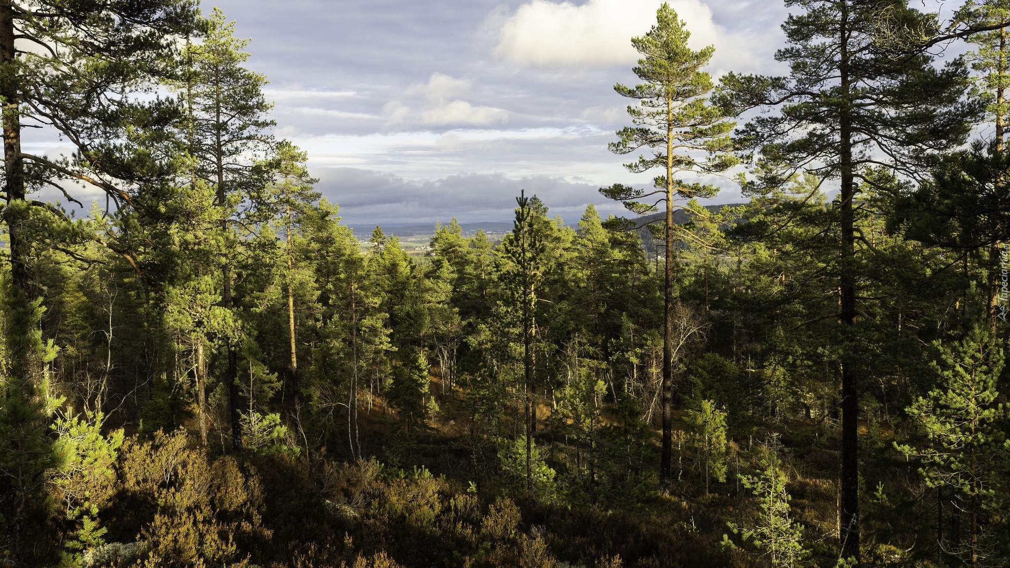 Edytor tapety: Rozświetlony las sosnowy