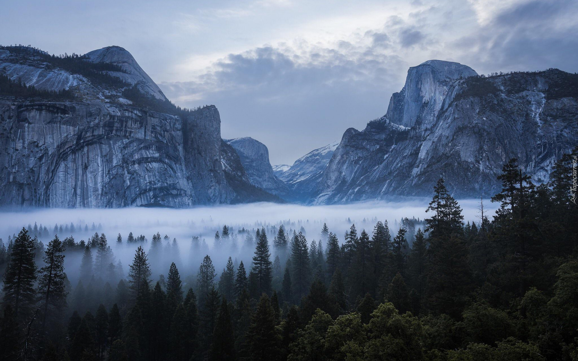 Edytor tapety: Mgła nad lasami w dolinie Parku Narodowego Yosemite