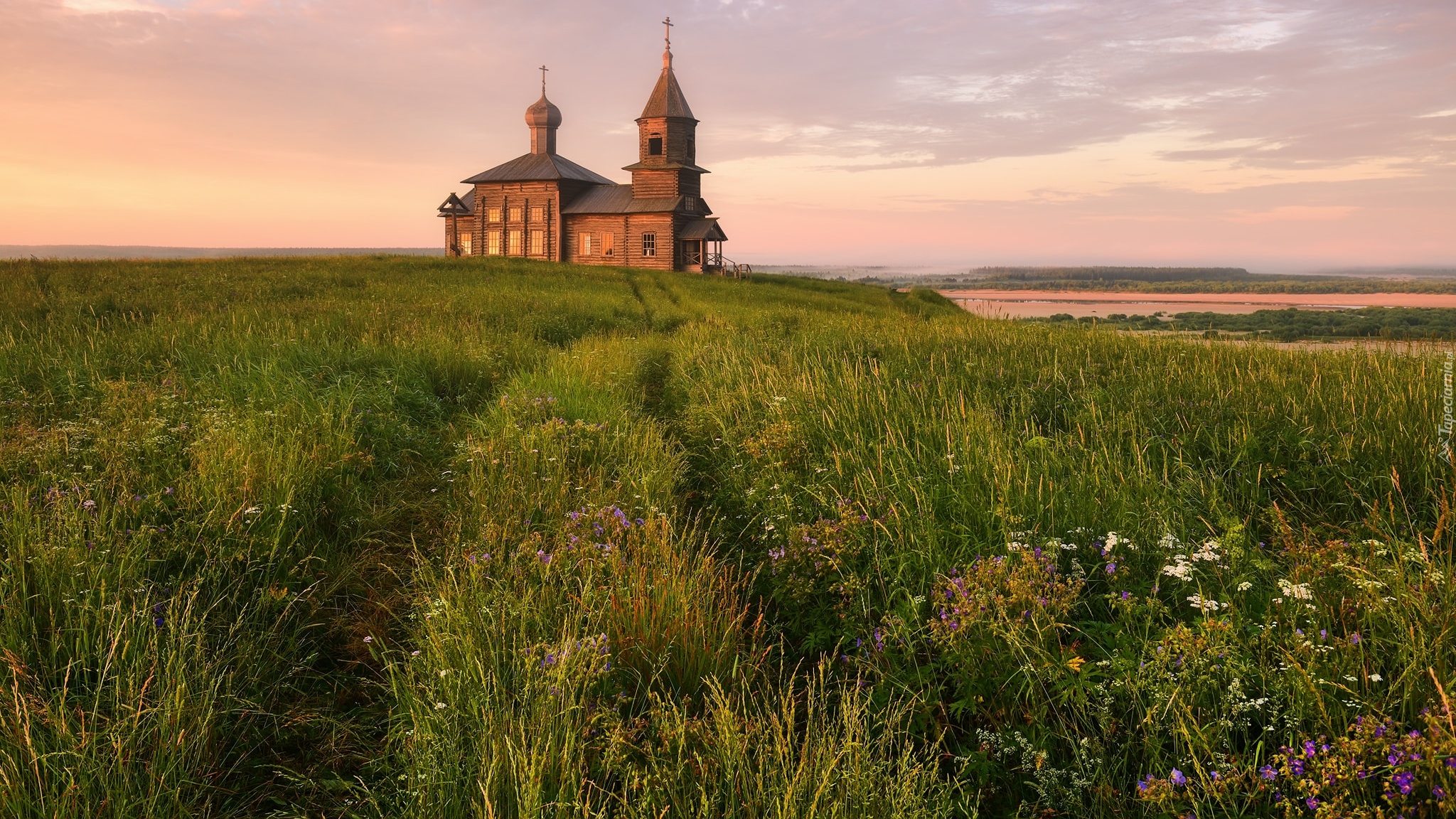 Edytor tapety: Cerkiew na zielonej łące