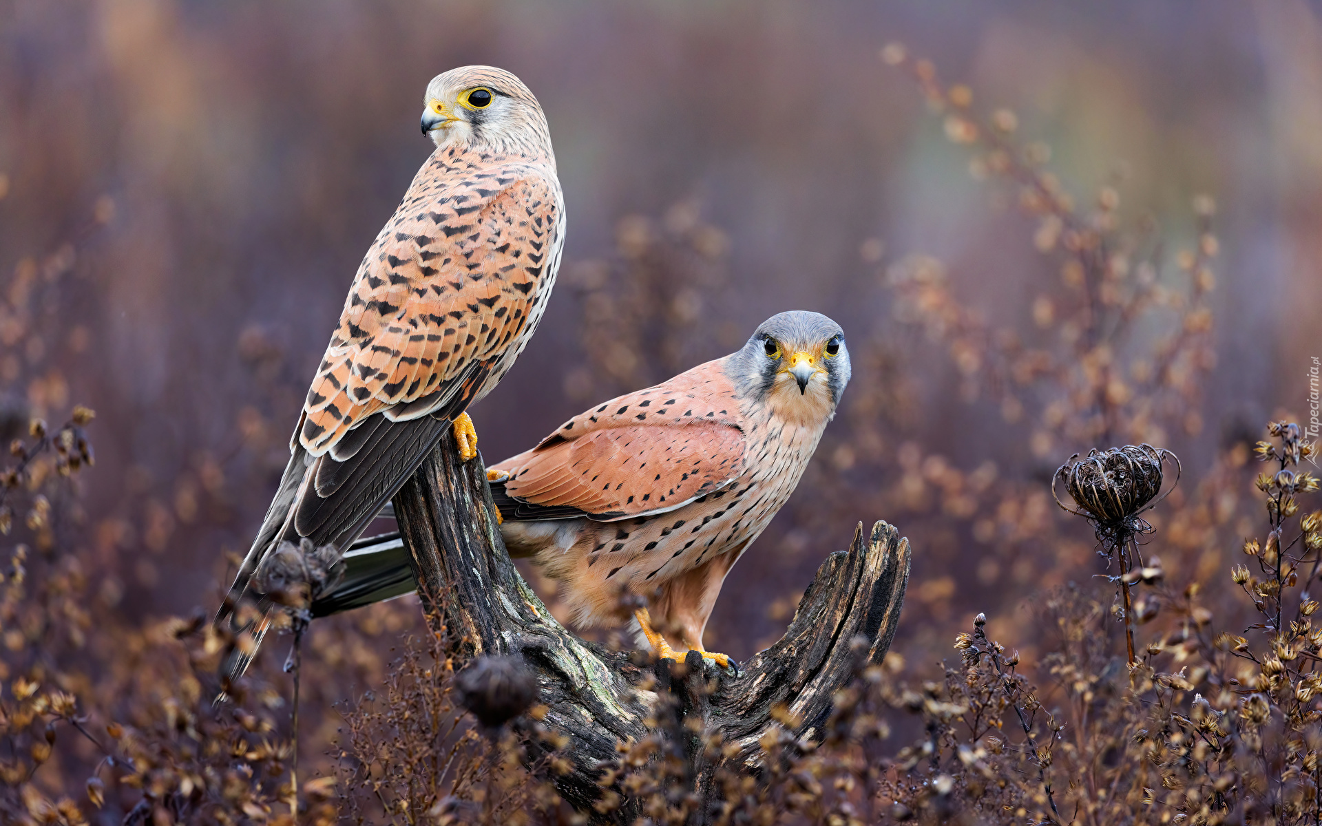Edytor tapety: Dwie pustułki zwyczajne na konarze