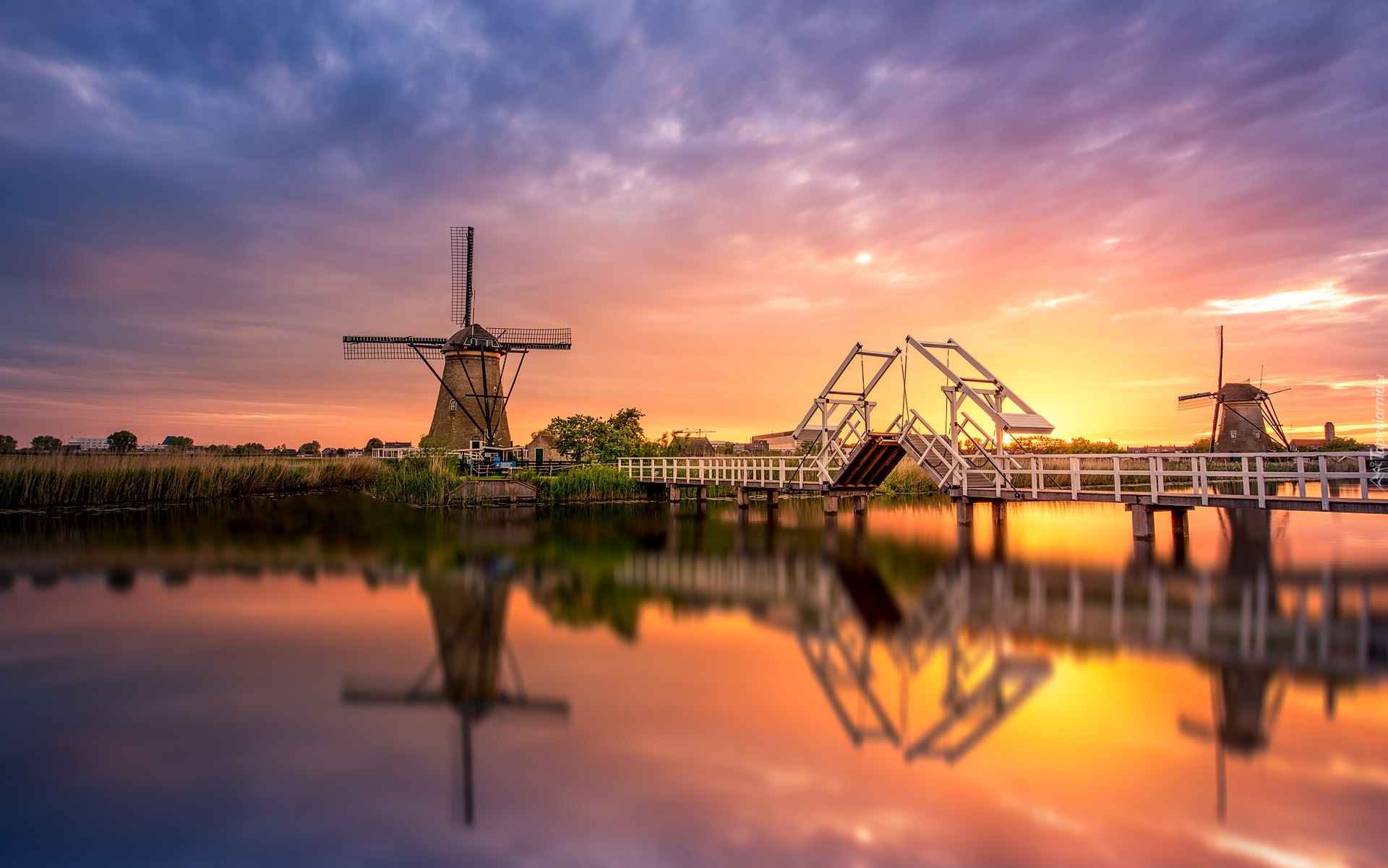 Edytor tapety: Most i wiatraki w Kinderdijk