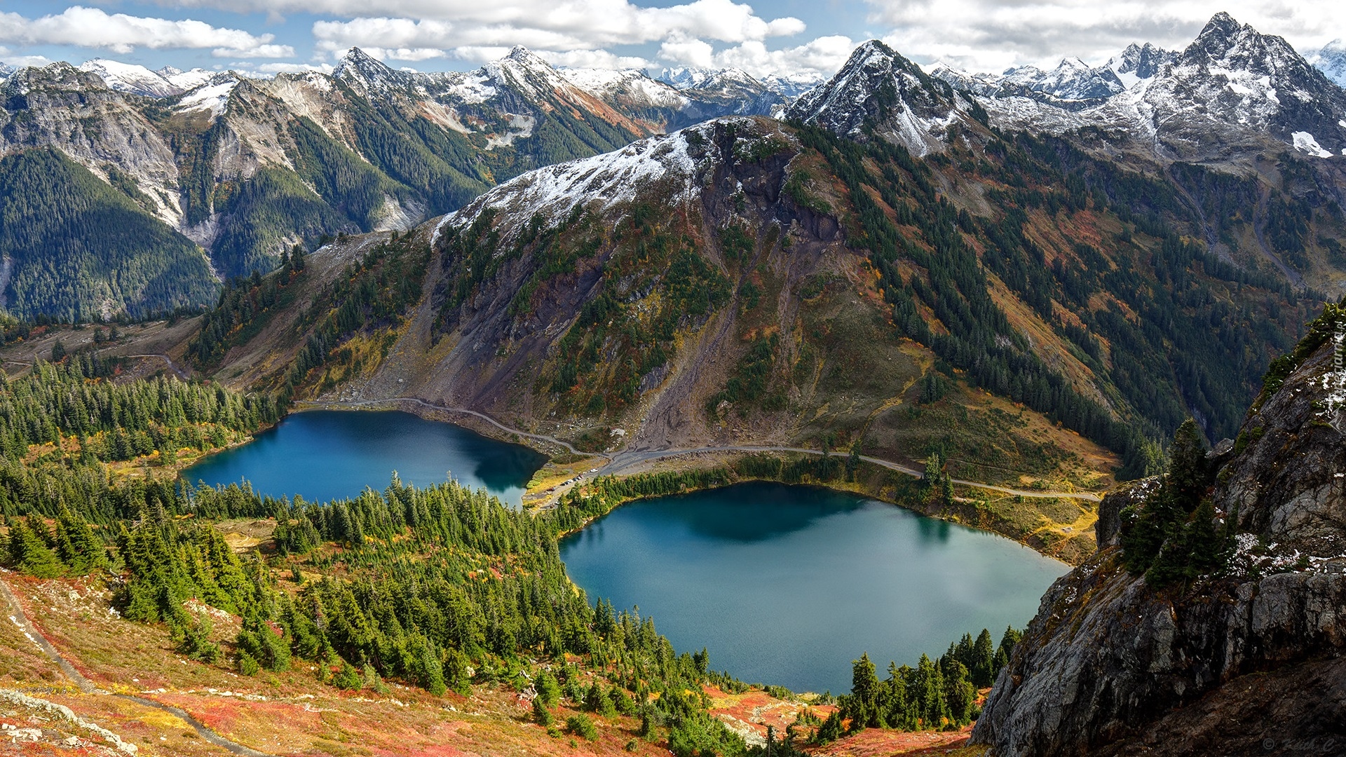 Edytor tapety: Dwa górskie jeziora Twin Lakes w Górach Kaskadowych