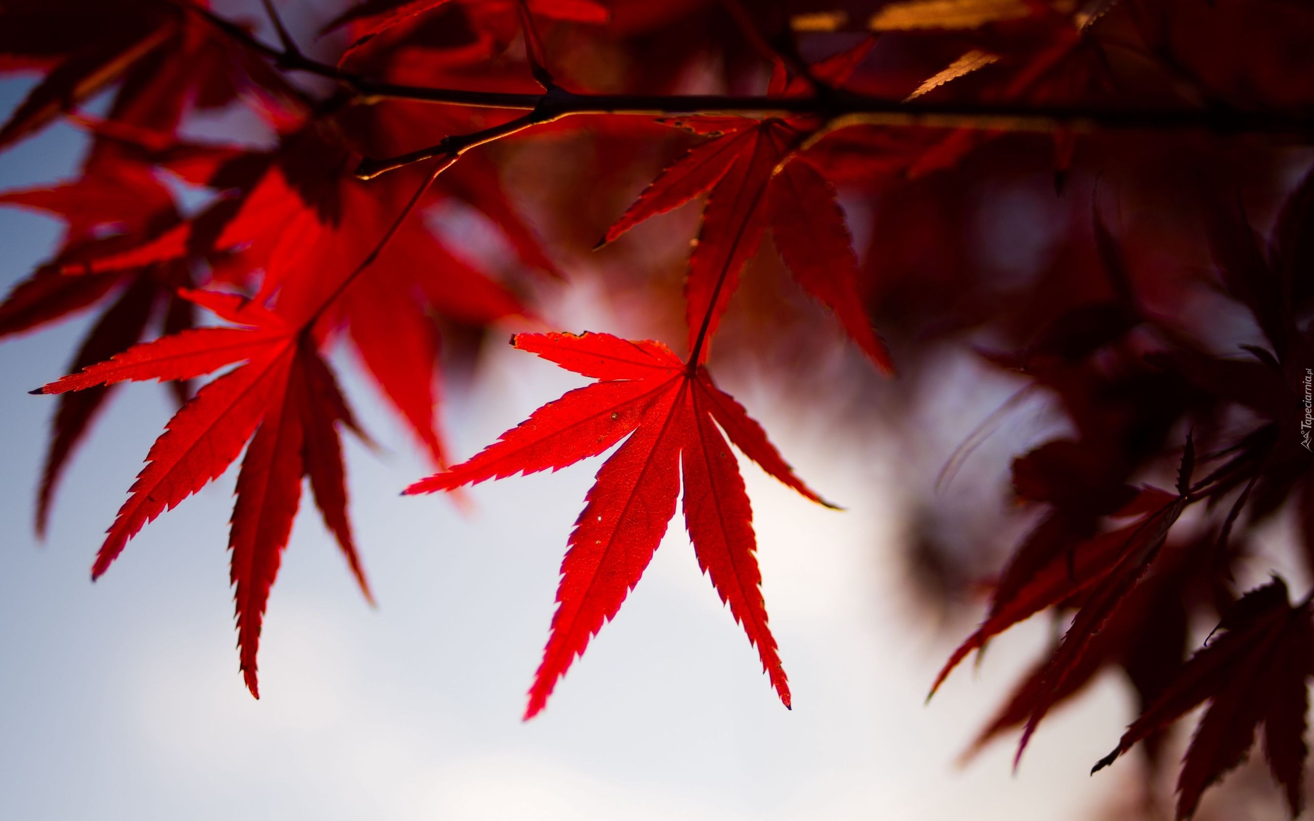Edytor tapety: Czerwone liście klonu na gałązkach w rozmyciu