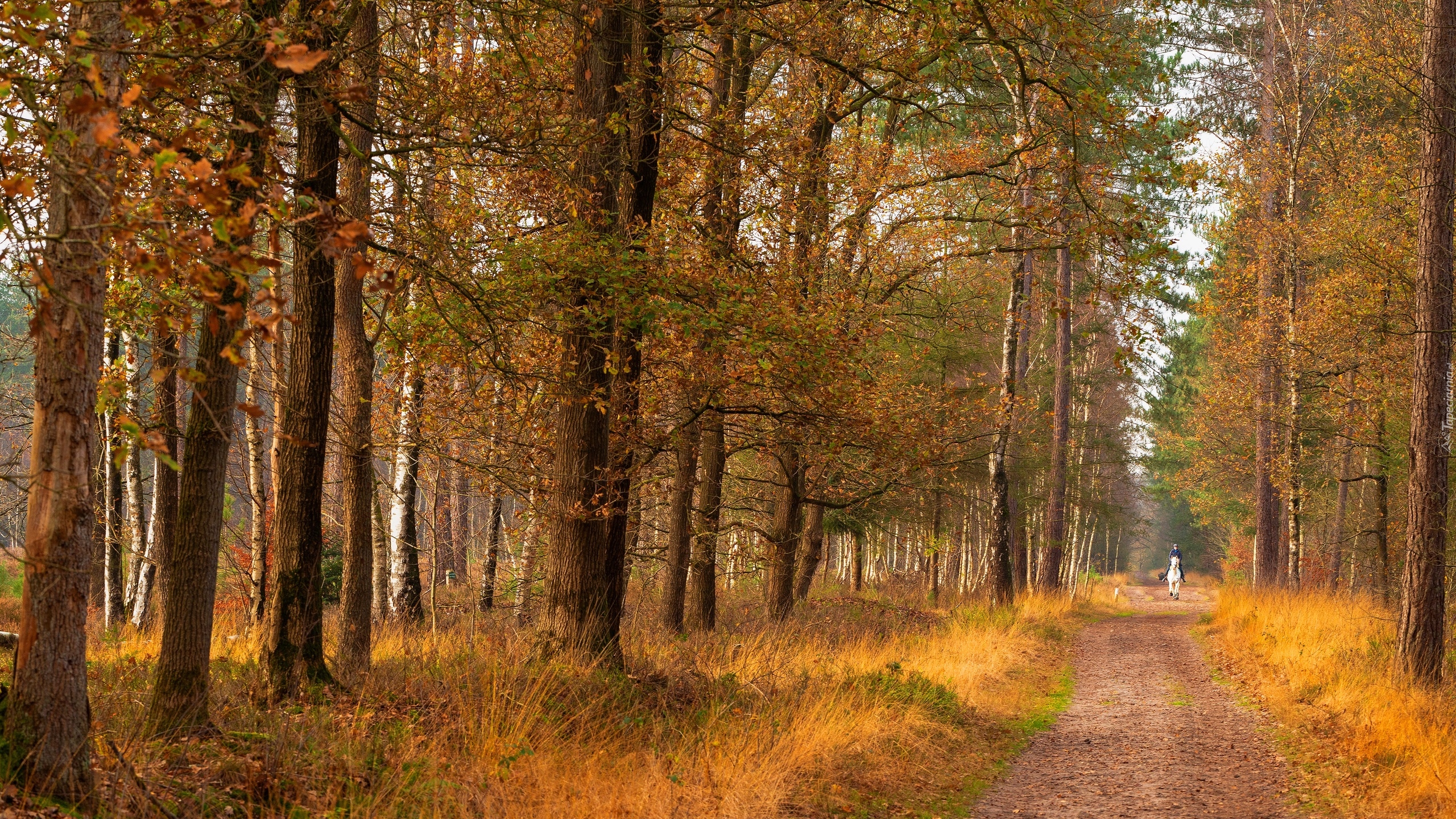 Edytor tapety: Jeździec na koniu w jesiennym lesie