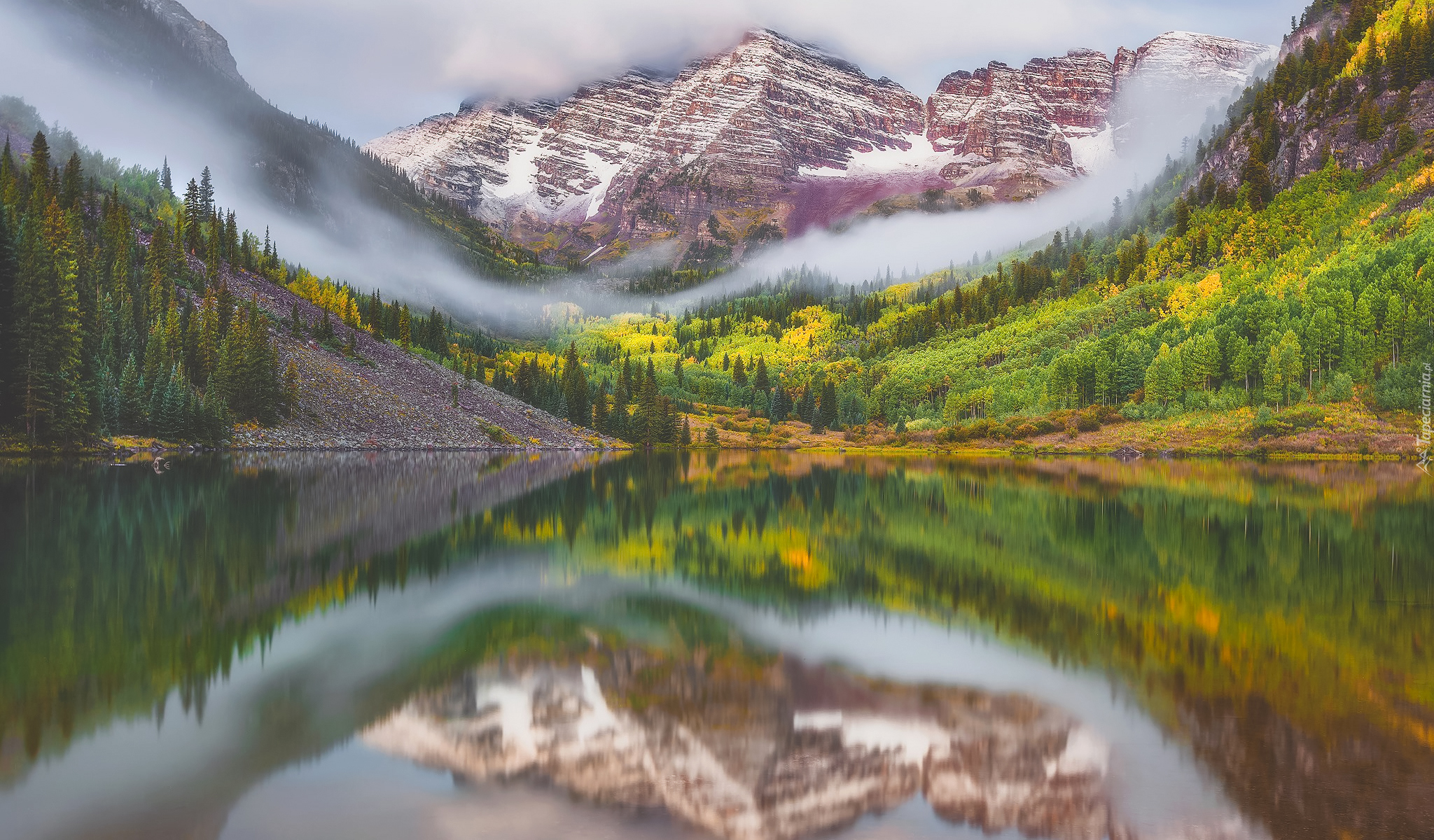 Edytor tapety: Szczyty Maroon Bells nad jeziorem Maroon Lake