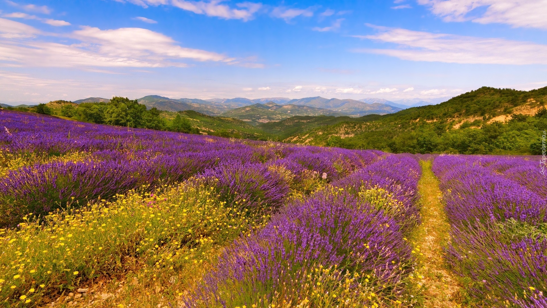 Edytor tapety: Lawenda na polu i góry w oddali