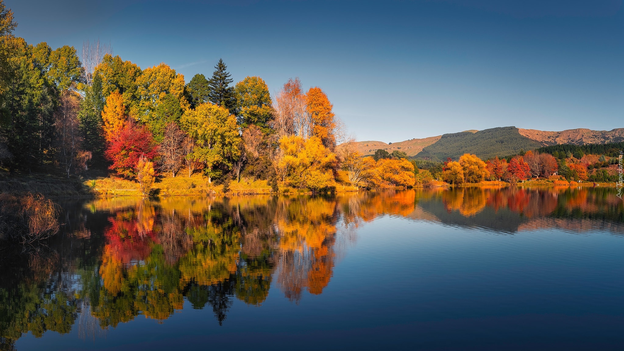 Edytor tapety: Kolorowe drzewa nad jeziorem Tutira