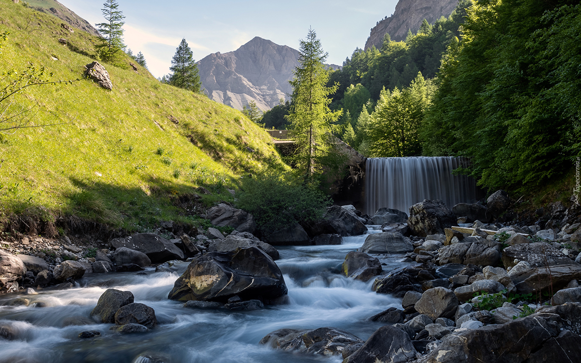 Edytor tapety: Rzeka Pique i wodospad Reallon we Francji