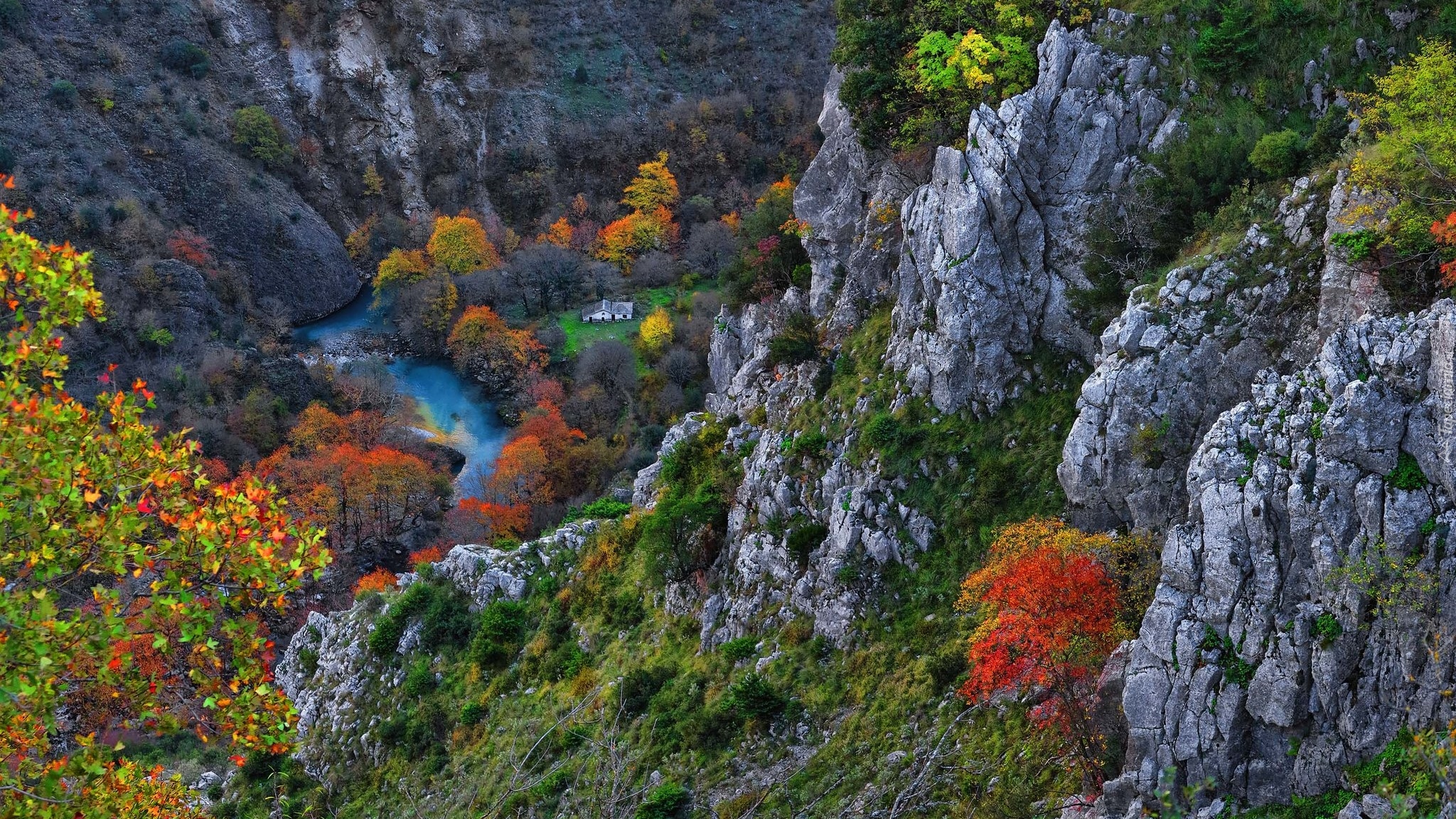 Edytor tapety: Kolorowe krzewy w wąwozie Vikos Gorge
