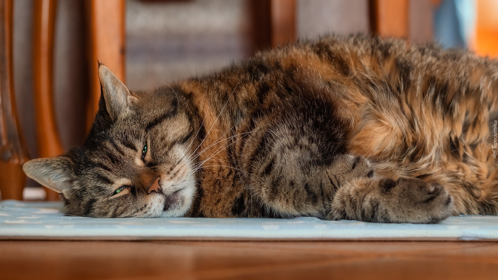 Edytor tapety: Bury kot leżący na macie