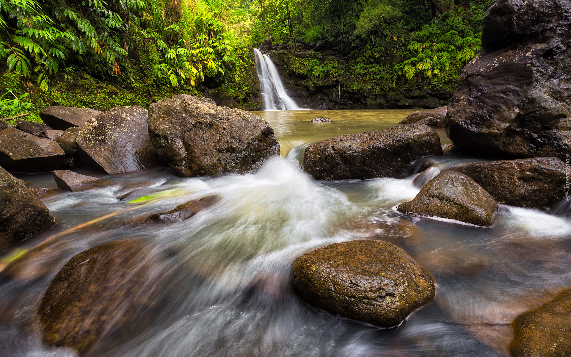 Edytor tapety: Mały wodospad i kamienie w rzece