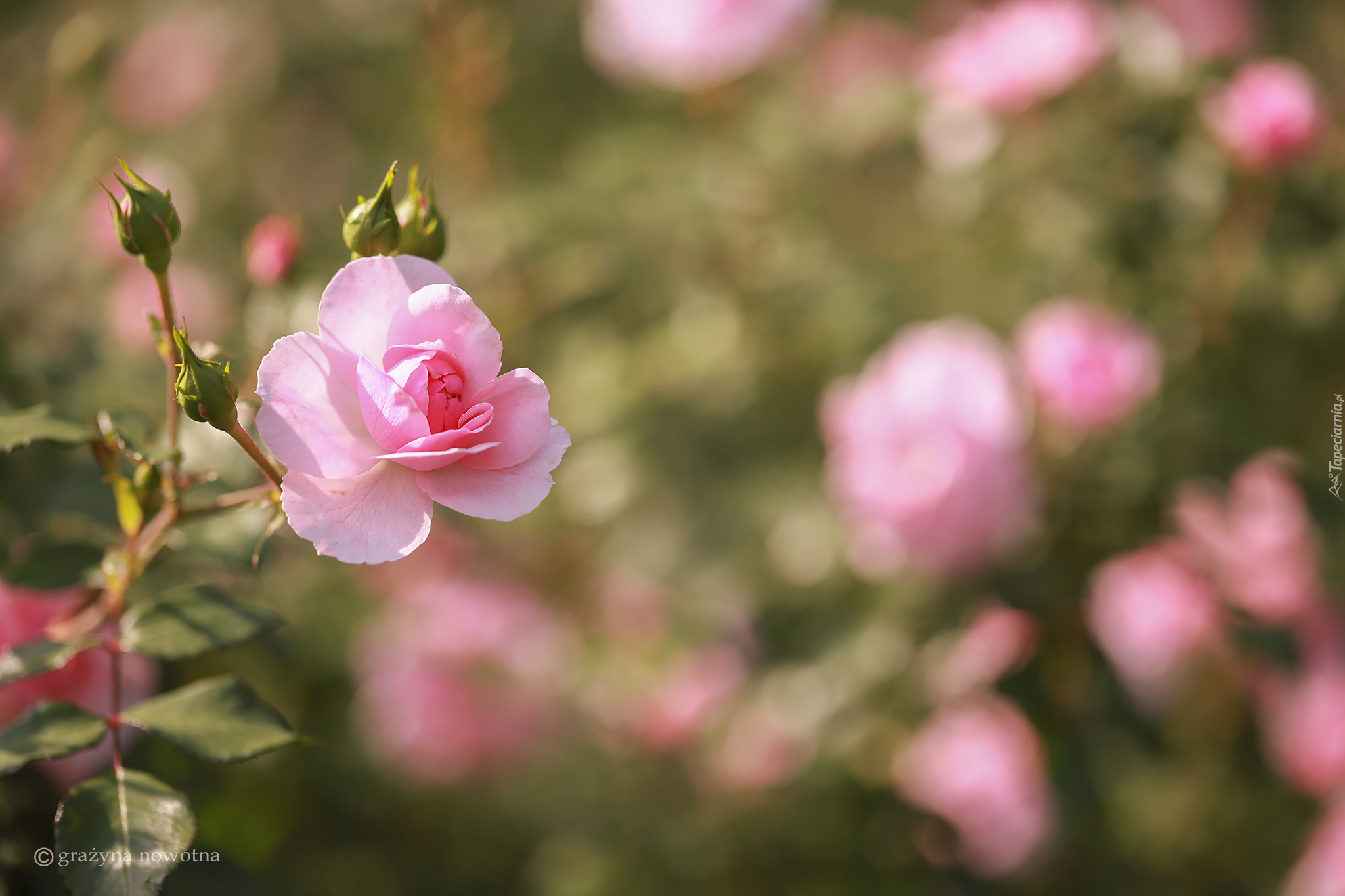Edytor tapety: Różowa róża z pąkami na rozmytym tle