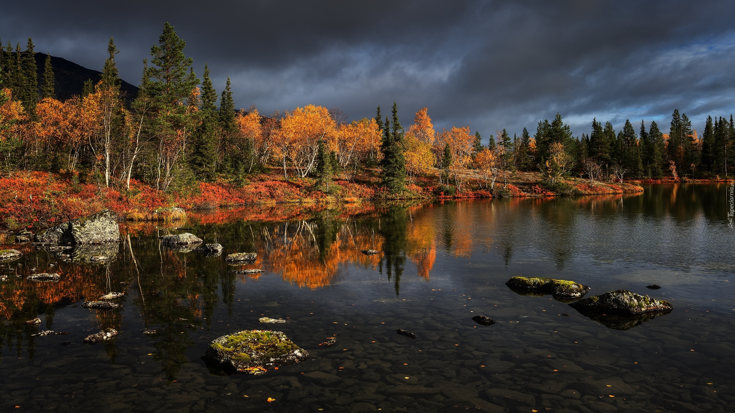 Edytor tapety: Ciemne chmury nad jeziorem na Półwyspie Kolskim