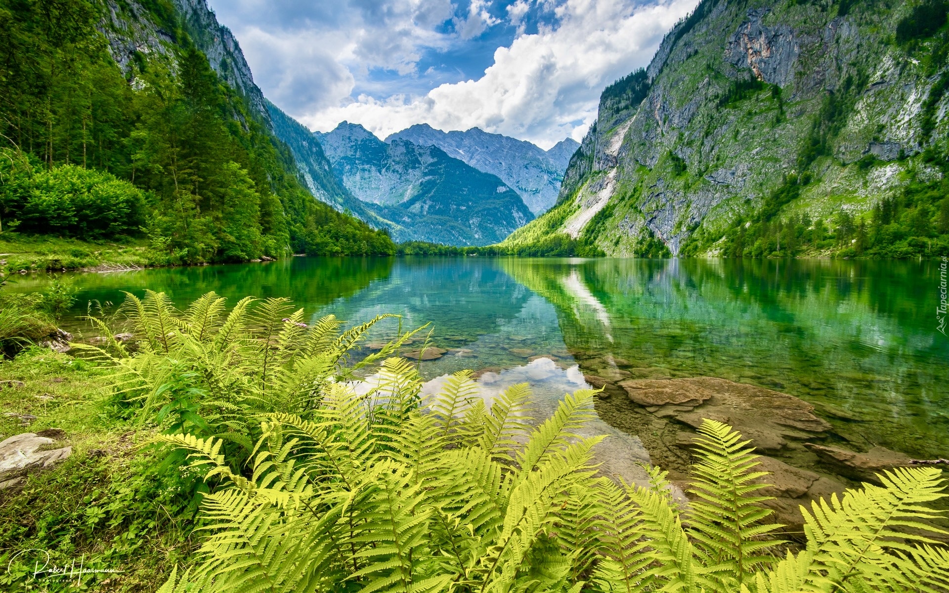 Edytor tapety: Paprocie na brzegu jeziora Obersee w Alpach Berchtesgadeńskich