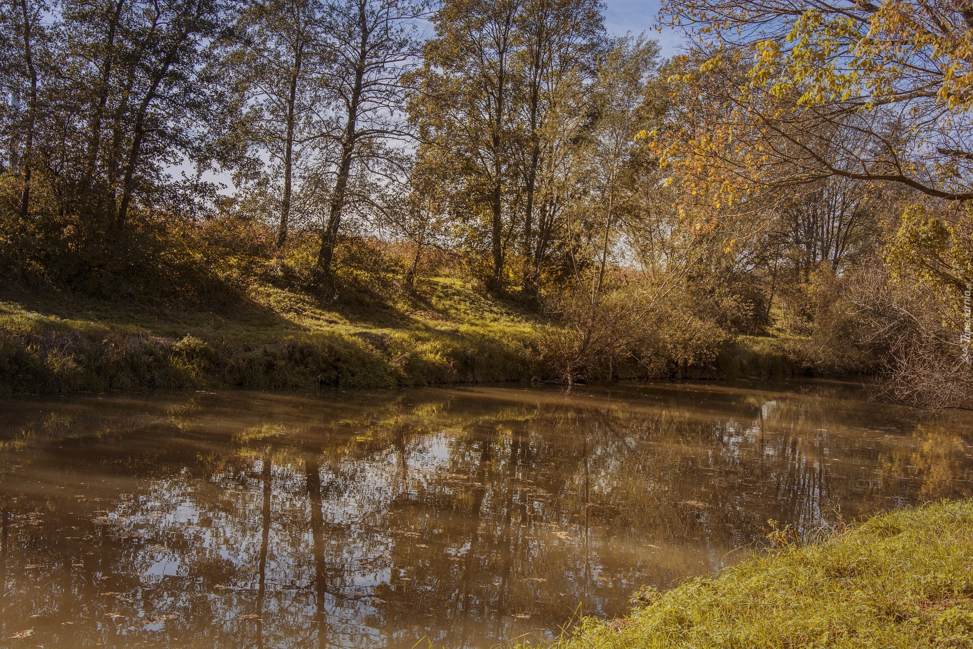 Edytor tapety: Jesienne drzewa na wysokim brzegu rzeki