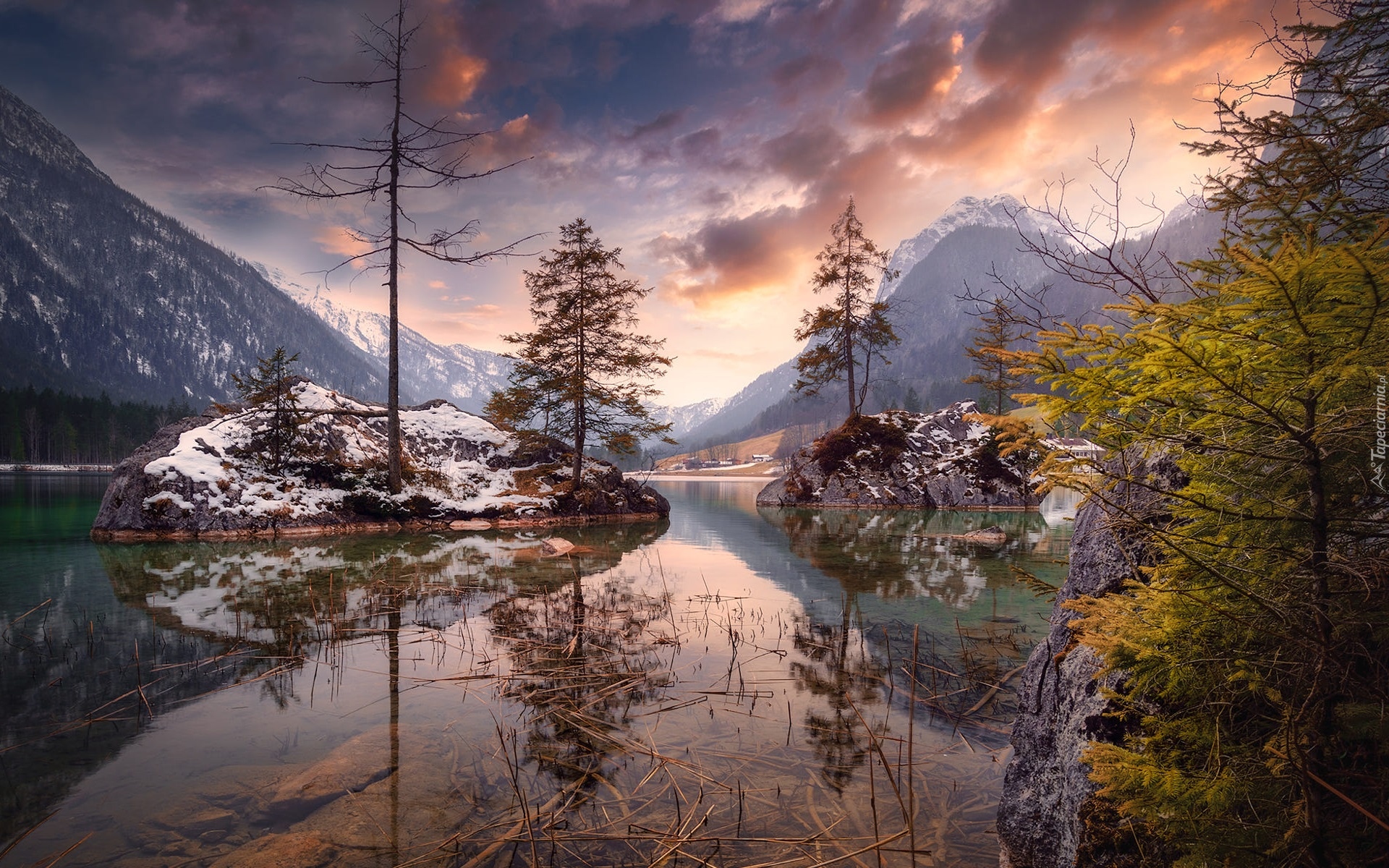 Edytor tapety: Jezioro Hintersee w Bawarii pod zachmurzonym niebem