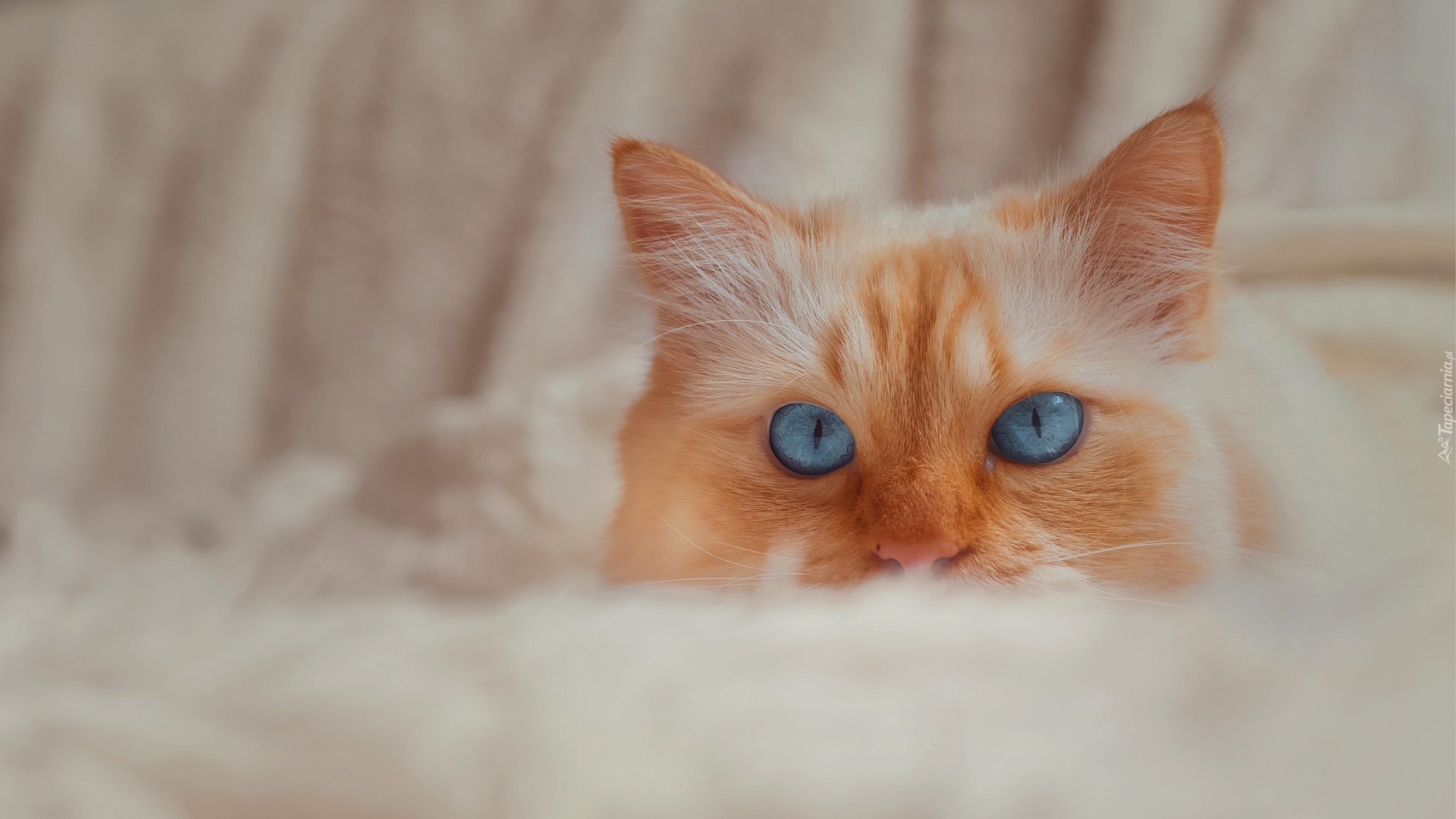 Edytor tapety: Rudy niebieskooki kot na kocu