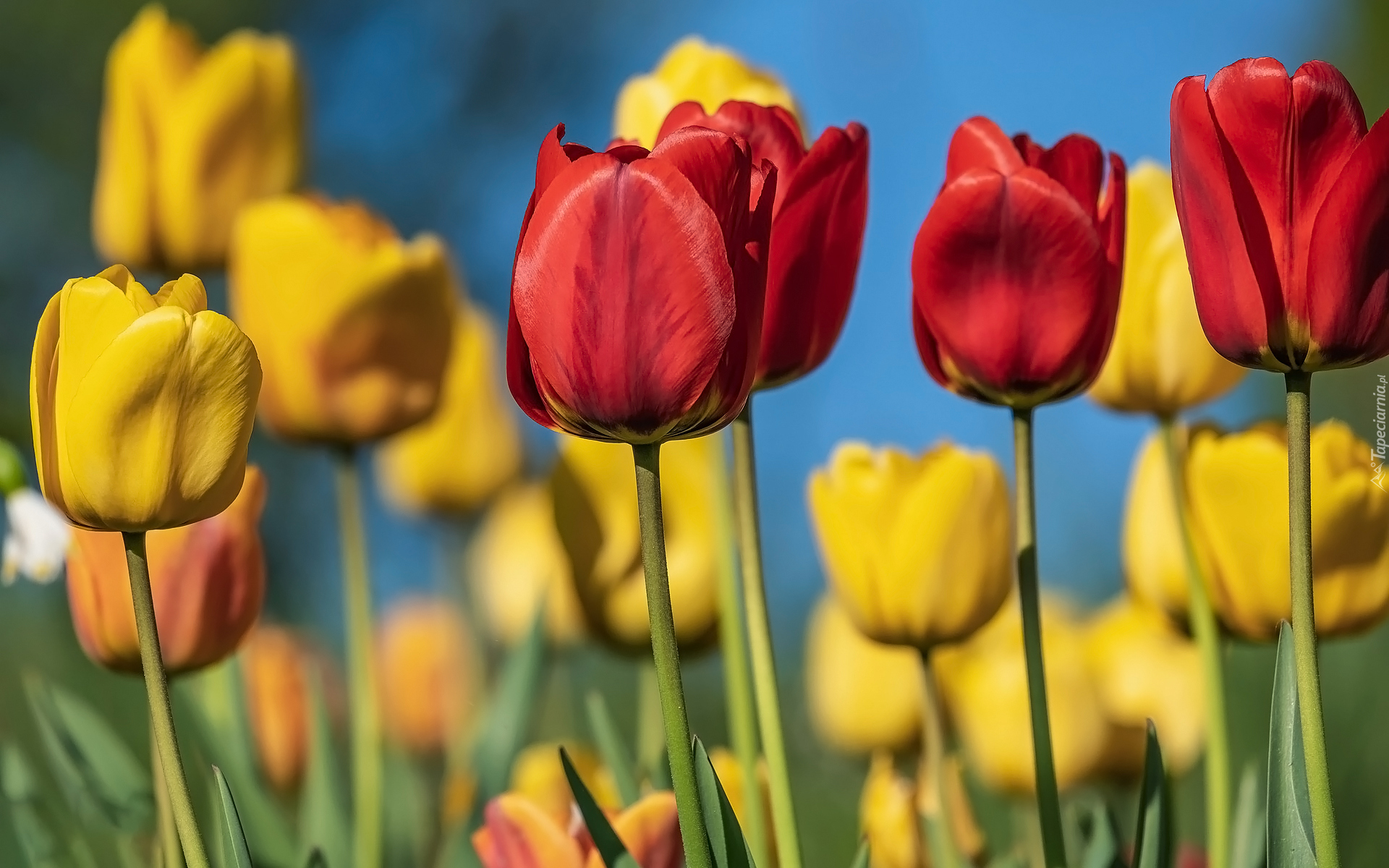 Edytor tapety: Tulipany żółte i czerwone w zbliżeniu