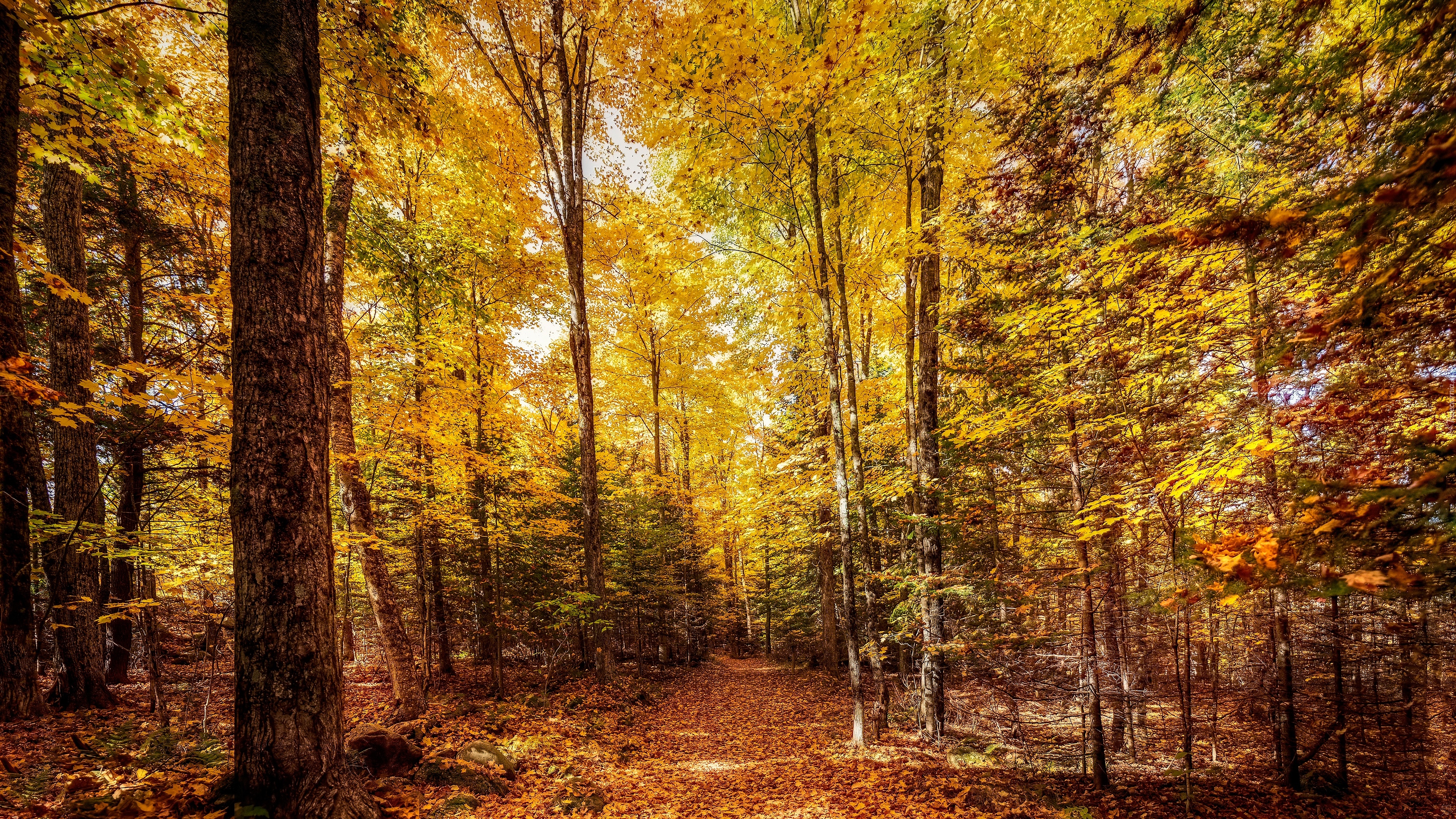 Edytor tapety: Las w słonecznym blasku jesienną porą