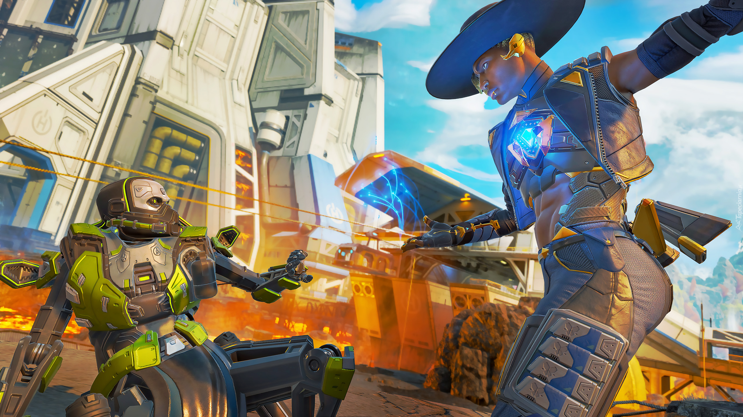 Edytor tapety: Kobieta z robotem z gry Apex Legends
