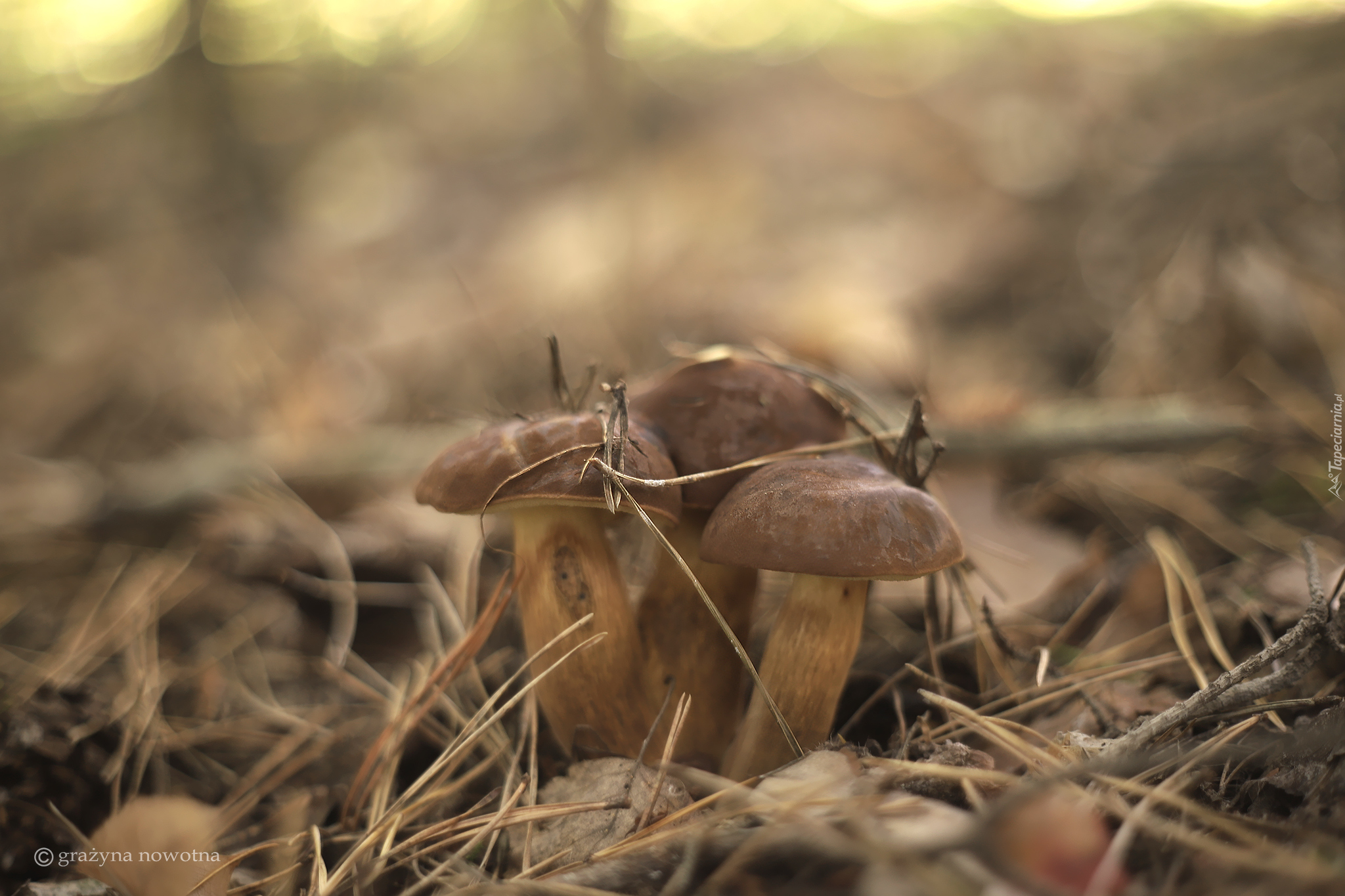 Edytor tapety: Trzy podgrzybki w leśnej ściółce