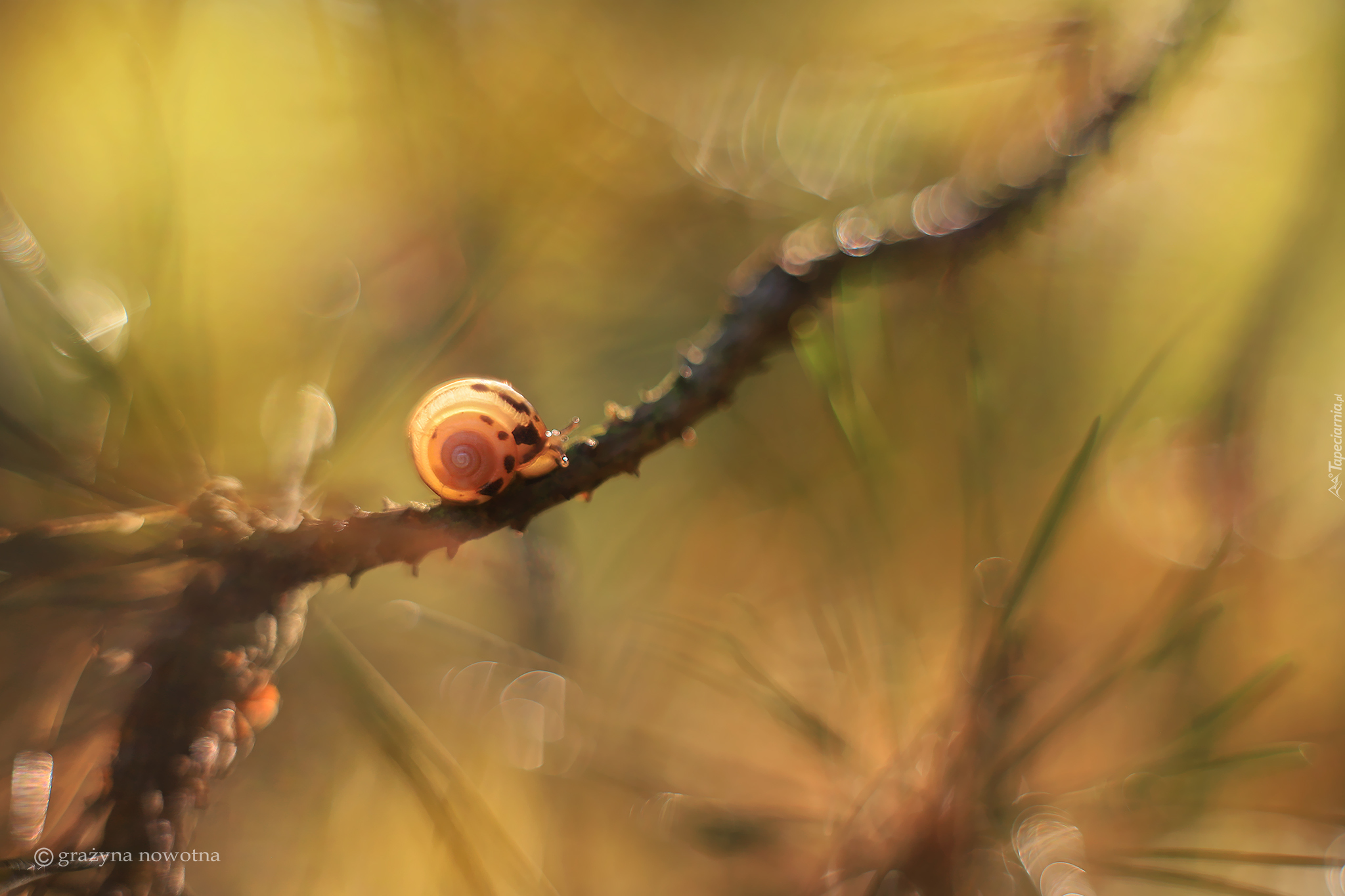 Edytor tapety: Ślimak na gałązce sosny
