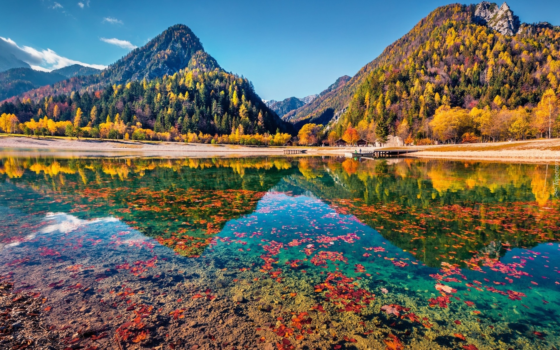 Edytor tapety: Zadrzewione góry nad jeziorem Jasna Lake
