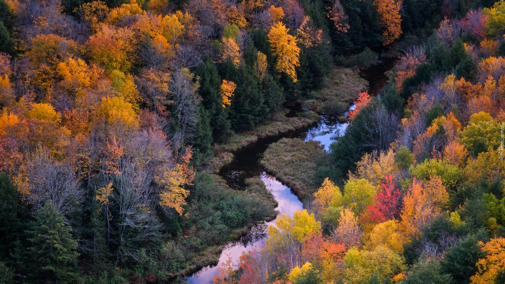 Edytor tapety: Rzeka pośród kolorowych jesiennych drzew