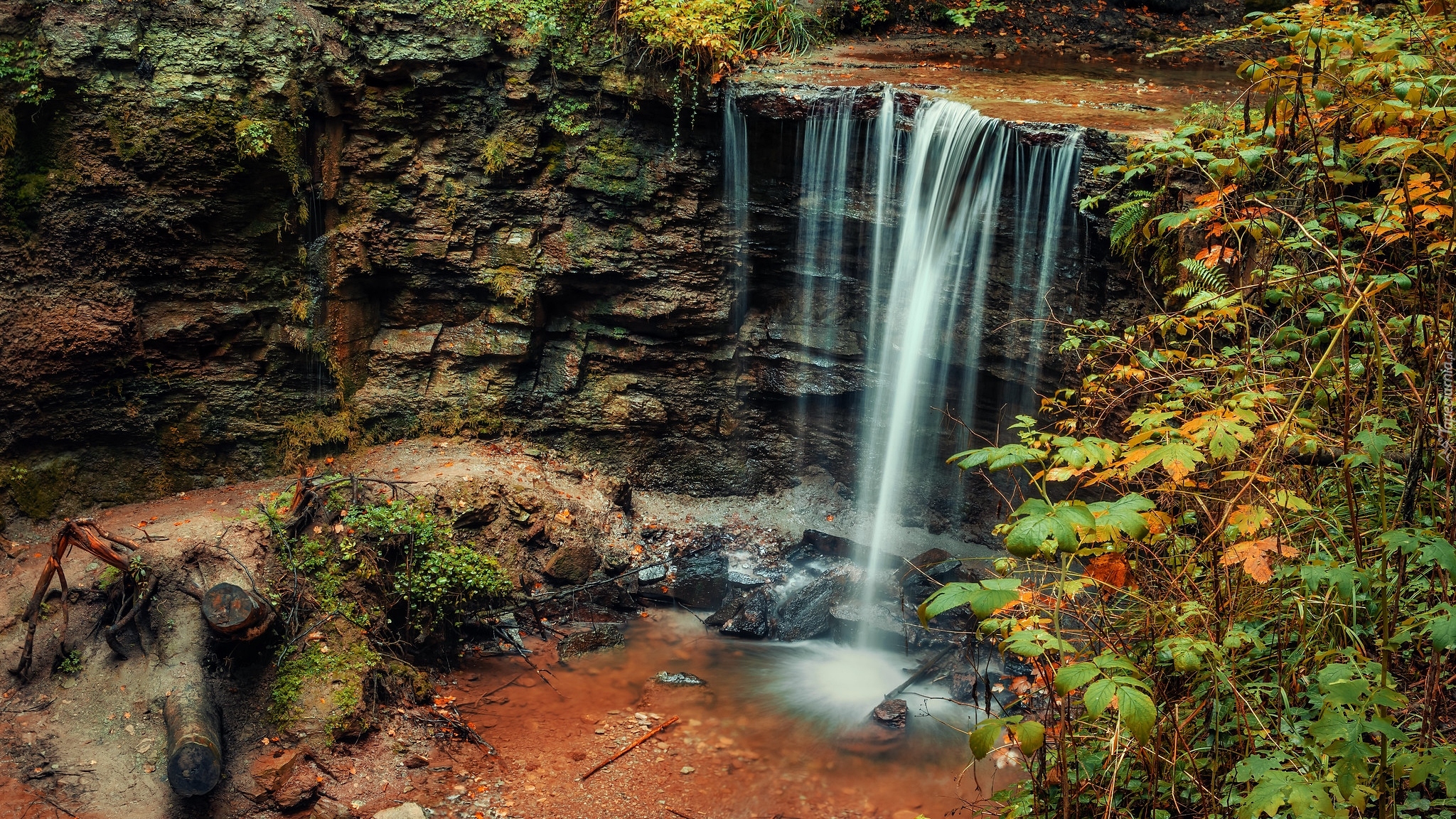 Edytor tapety: Zielone rośliny na skałach przy wodospadzie